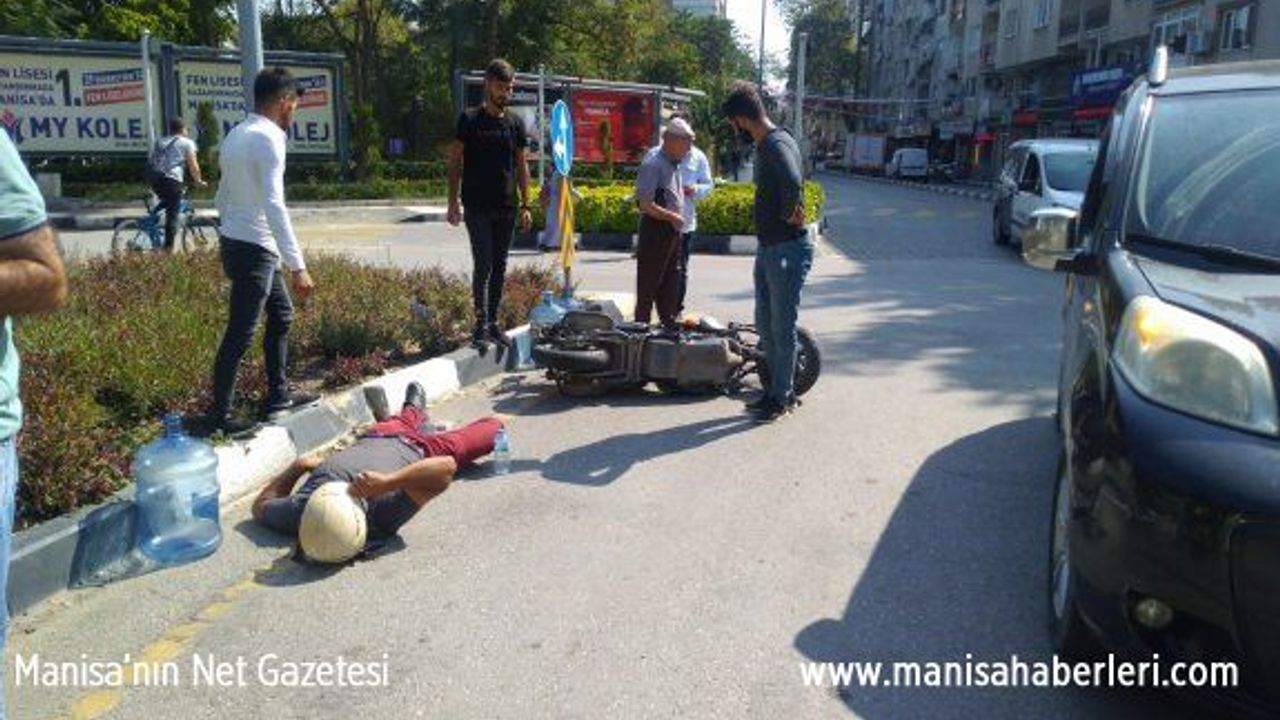 Edinilen bilgiye göre Manisa lisesi yönünden eski garaj yönüne seyir halinde olan Mustafa Şevik idaresindeki 45 DG 911 plakalı hafif ticari araç ile Ulupark yönünden Öğretmenevi yönüne seyir halinde olan İbrahim Kuş idaresindeki elektrikli bisiklet çarpıştı.