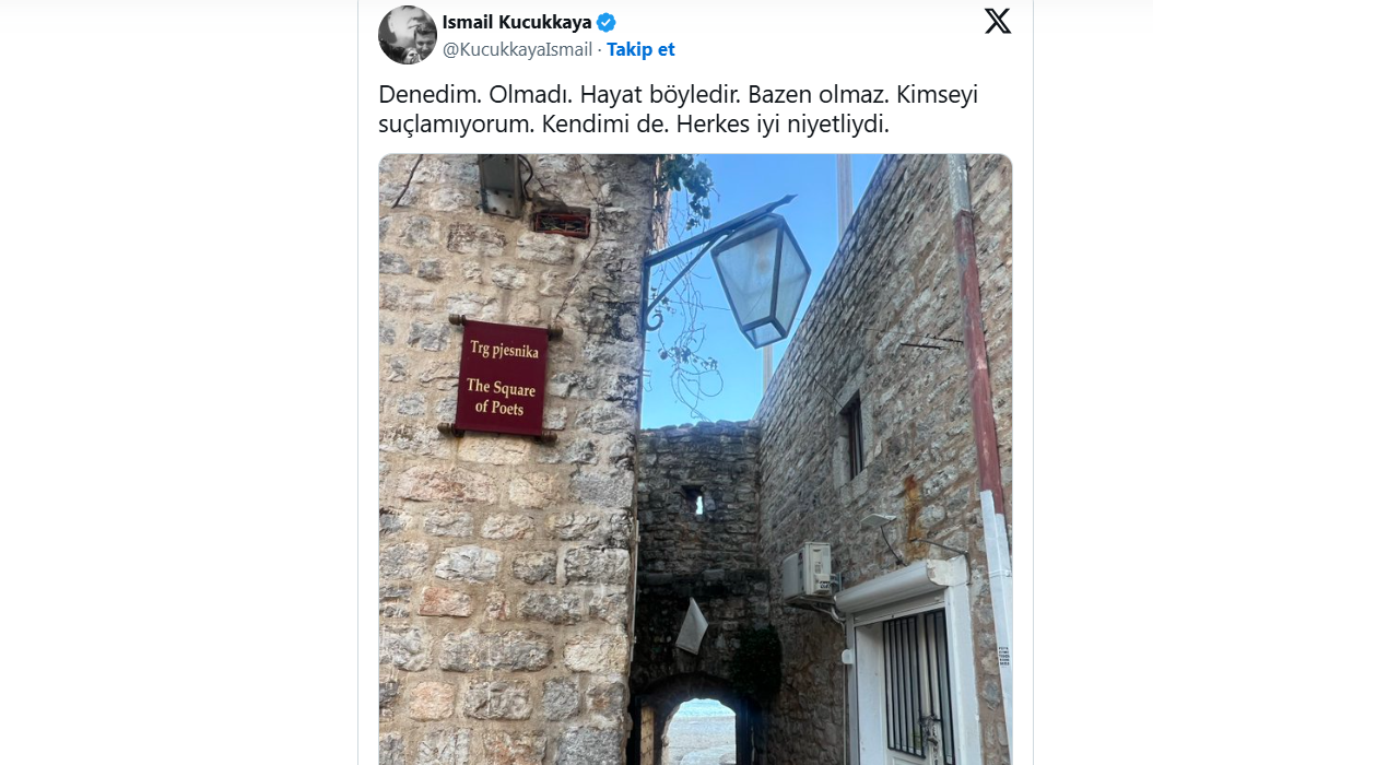 “Denedim. Olmadı. Hayat böyledir. Bazen olmaz. Kimseyi suçlamıyorum. Kendimi de. Herkes iyi niyetliydi.”