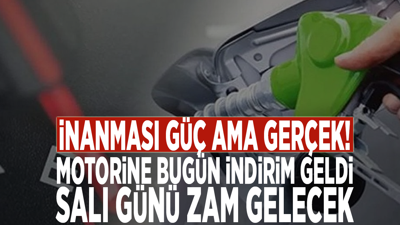 Bugün motorine 93 kuruş indirim geldi, ama Salı gününden itibaren litre fiyatına 1,08 lira zam gelmesi bekleniyor.