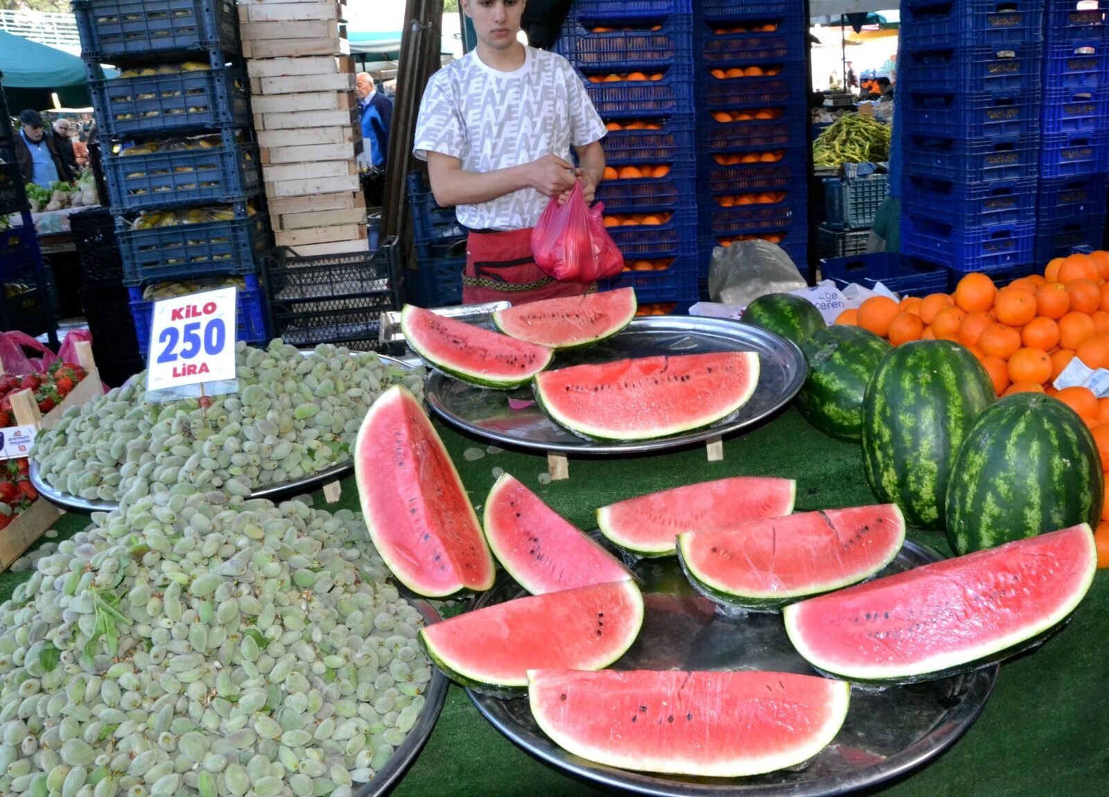 İran bir yandan ABD-İsrail ve Körfez ülkelerine saldırıyor bir yandan da tarım üretimini sürdürüyor. İran'dan ithalatına izin verilen karpuz Manisa’da Mart ayında tezgahlarda yerini aldı. İran karpuzu, sıcak iklim koşulları sayesinde Türkiye’de üretim sezonu başlamadan önce olgunlaşarak piyasaya sunuluyor. İran karpuzları, mevsimi olmamasına rağmen vatandaşların ilgisini çekerken, fiyatıyla da gündeme geldi. İran karpuzun kilosu 80-120 lira arasında değişiyor. Ülkemizde ise özellikle Çukurova bölgesinde karpuz üretimi yoğun bir şekilde gerçekleşiyor. Yerli karpuz hasadının başlamasıyla fiyatların düşeceği öngörülüyor.