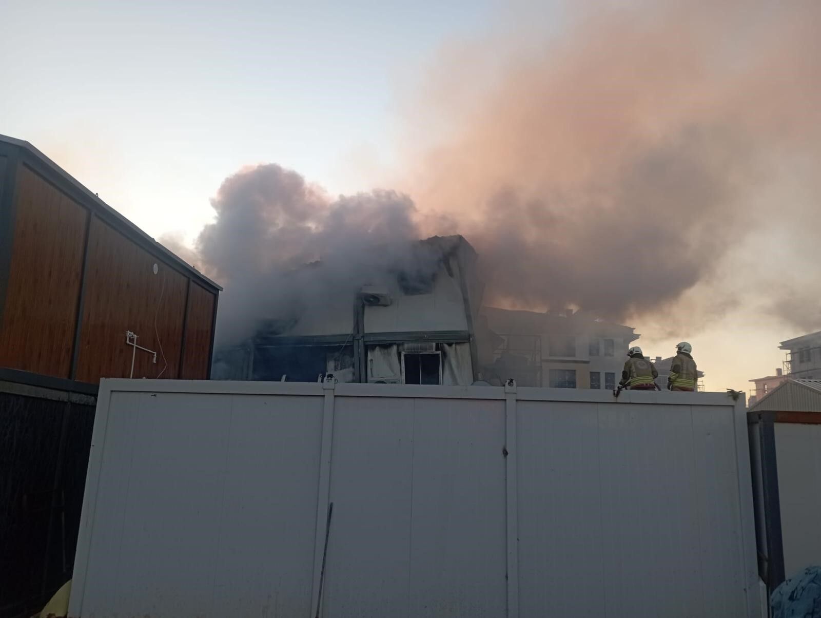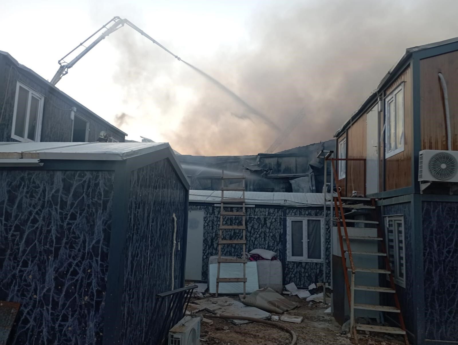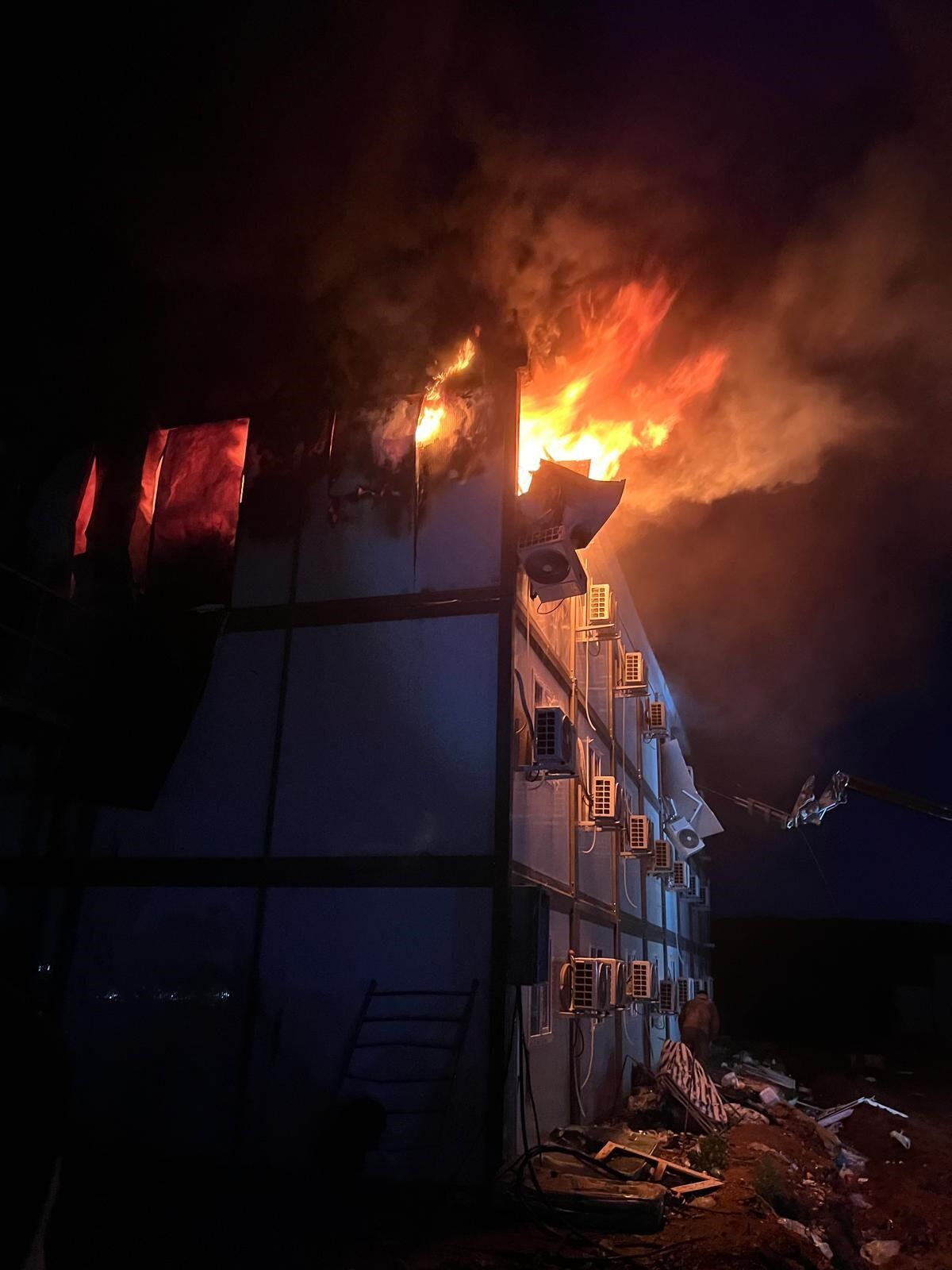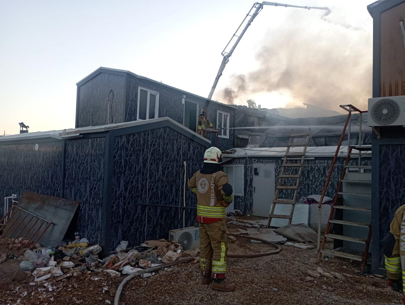 Yangın Manisa’nın Şehzadeler ilçesine bağlı Sancaklıbozköy Mahallesi’ndeki TOKİ konutları inşaat alanındaki 3 katlı işçi konteynerinde meydana geldi.