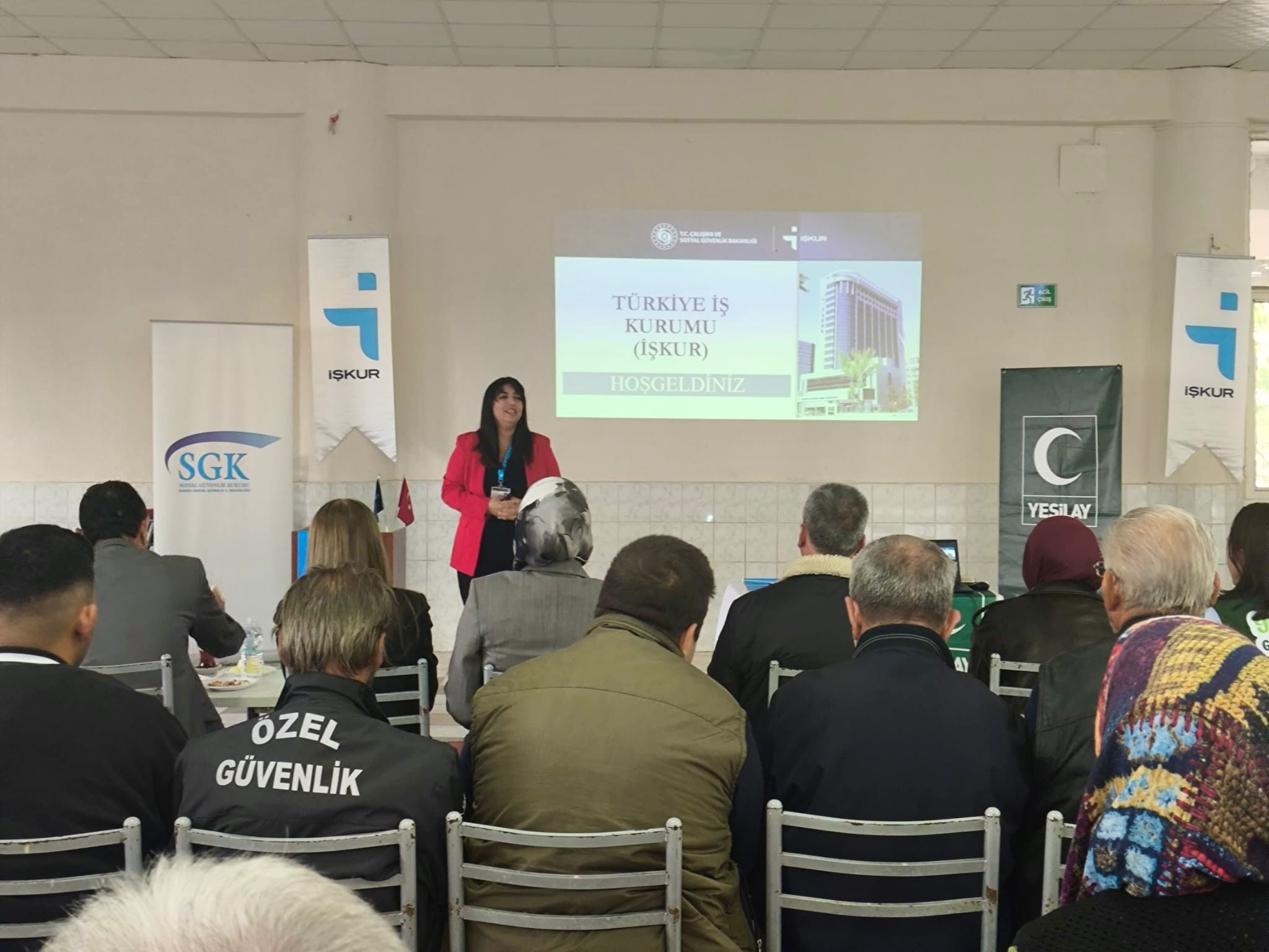 Manisa İŞKUR İl Müdürlüğü, SGK ve Yeşilay Manisa Şubesi iş birliğiyle düzenlenen bilgilendirme toplantısında vatandaşlarla bir araya gelindi. Etkinlikte, istihdam imkanları, sosyal güvenlik hakları, toplum sağlığı ve farkındalık çalışmaları hakkında bilgilendirmelerde bulunuldu. Toplantıya katılan vatandaşlar, kurum temsilcilerine doğrudan soru yönelterek istihdam süreçleri, iş arama yöntemleri ve sosyal güvenlik hakları konusunda bilgi alma fırsatı buldu.