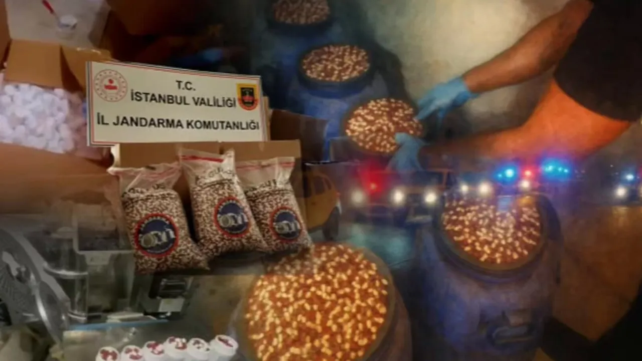 İstanbul İl Jandarma Komutanlığı’nın istihbari çalışmalarıyla düzenlenen operasyonda, 7 milyon 896 bin adet uyuşturucu hap ve 63 kilogram ham madde (yaklaşık 1 milyon 280 bin hap üretilebilecek kapasitede) ele geçirildi.