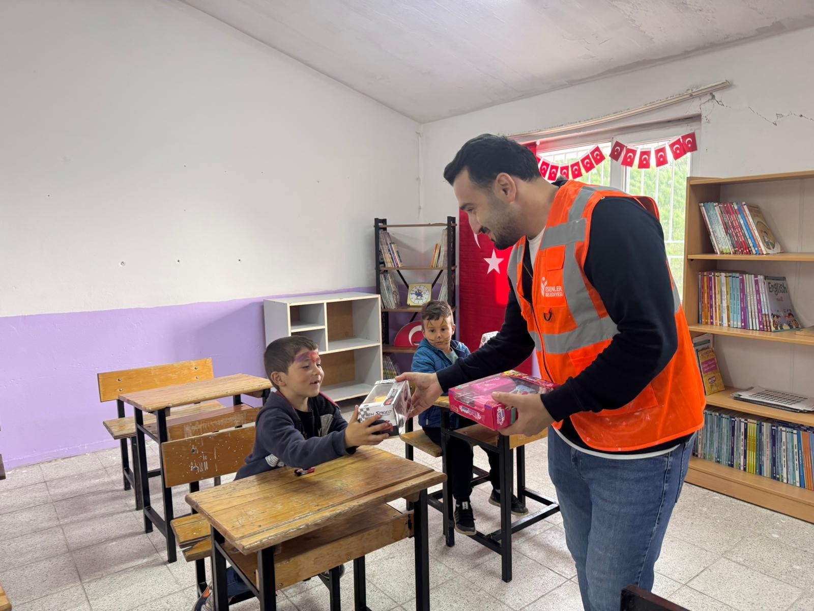 Okul öğrencilerinden 9 yaşındaki Emine, "Ben 3. sınıfa gidiyorum. Salur Köyü'nde yaşıyorum. Okulumuza boya yapıyorlar, kütüphane açıyorlar, sıralarımızı düzeltiyorlar. Ablalarımıza, abilerimize çok teşekkür ediyorum" diye konuştu.