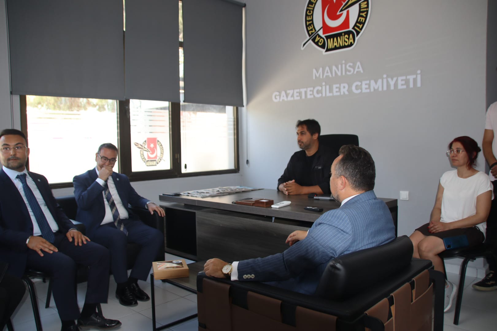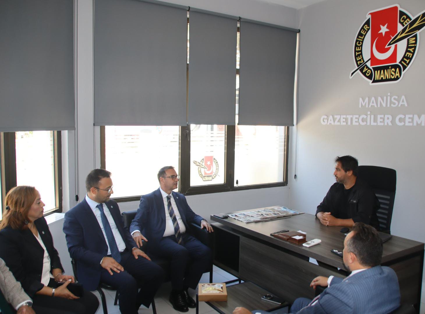İYİ Parti Çanakkale Milletvekili Rıdvan Uz, İYİ Parti Genel İdare Kurulu (GİK) Üyesi Hasan Eryılmaz, İYİ Parti Merkez Disiplin Kurulu Üyeleri Gökhan Akkuş ve Jale Hayta ile İYİ Parti Manisa İl Başkanı Ali Zafer İksir, Manisa Gazeteciler Cemiyeti’ni ziyaret etti. Manisa Gazeteciler Cemiyeti Başkanvekili Ersan Erdoğan ve yönetim kurulu üyelerinin de hazır bulunduğu ziyarette, samimi bir ortamda sohbet gerçekleştirildi. Ziyaretten duyduğu memnuniyeti dile getiren Başkanvekili Ersan Erdoğan, İYİ Parti heyetine teşekkür etti. İYİ Parti Çanakkale Milletvekili Rıdvan Uz, gündeme dair değerlendirmelerde bulundu. Uz, duyduğu memnuniyeti dile getirerek misafirperverlikten dolayı teşekkür etti.