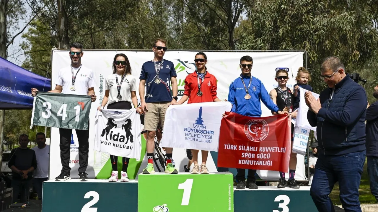 Hem matematik öğretmeni hem de bir Ironman sporcusu olan İpek Öztosun Bezdan (31), İzmir Duatlonu'nda birincilik ipini göğüsledi. Madalya töreninde ödülünü, İzmir Büyükşehir Belediye Başkan’ı Dr. Cemil Tugay’ın elinden alan rekortmen sporcu, katıldığı son altı ulusal turnuvayı da ilk sırada tamamlama başarısı gösterdi. Kasım ayında İspanya’da düzenlenecek Ironman 70.3 Dünya Şampiyonası’nda ülkemizi temsil edecek deneyimli sporcu, bu yıl üçüncüsü düzenlenen Çeşme Yarı Maratonu’nu da geçtiğimiz yıl olduğu gibi yine şampiyon tamamladı. İzmir Büyükşehir Belediyesi ve Türkiye Triatlon Federasyonu işbirliğinde rekor bir katılımla düzenlenen İzmir Duatlonu’nu 5 madalya ile tamamlayan İzmir Büyükşehir Belediyesi Triatlon Takımı’nda; Ege Kızılelma, Uzay Tenli Yıldız ve Delfin Eylül Avcı ikincilik kürsüsüne çıkarken, Arkın Şıktaşlı ise üçüncü oldu.