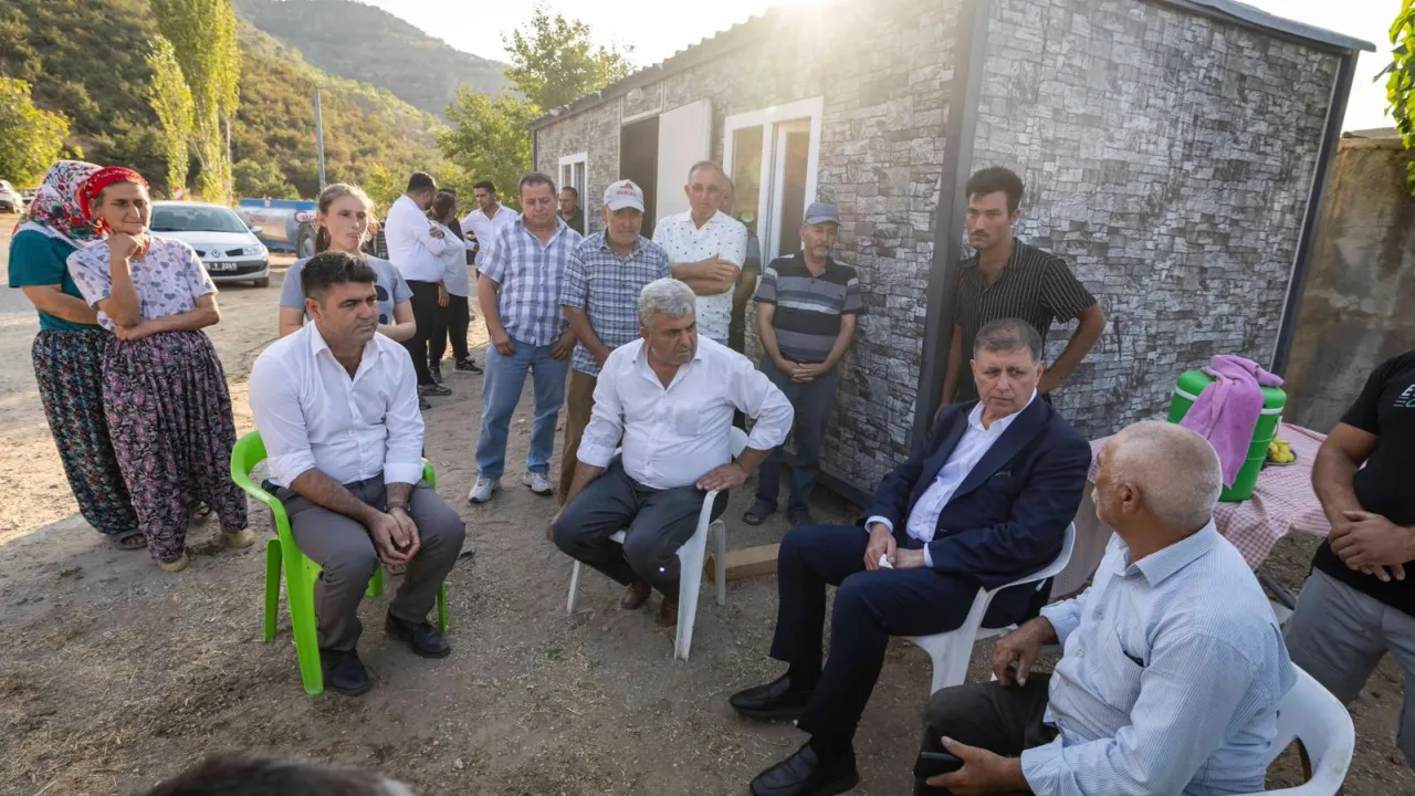 İzmir Büyükşehir Belediye Başkanı Dr. Cemil Tugay, Kiraz’ın Haliller Köyü’nde elektrik kaçağından çıkan yangından dolayı evleri kullanılamaz hale gelen Cerit ailesini ziyaret etti. İhtiyaçların giderilmesi için talimat veren, gerekli desteklerin aktarılmasını sağlayan Başkan Tugay, ev için de çalışma yürütülmesi gerektiğini ifade etti.İZMİR (İGFA) - İzmir Büyükşehir Belediye Başkanı Dr. Cemil Tugay, 15 Ağustos cuma günü elektrik kaçağından çıkan yangın nedeniyle evleri ikamet edilemeyecek duruma gelen Ali Cerit ve ailesini ziyaret etti.