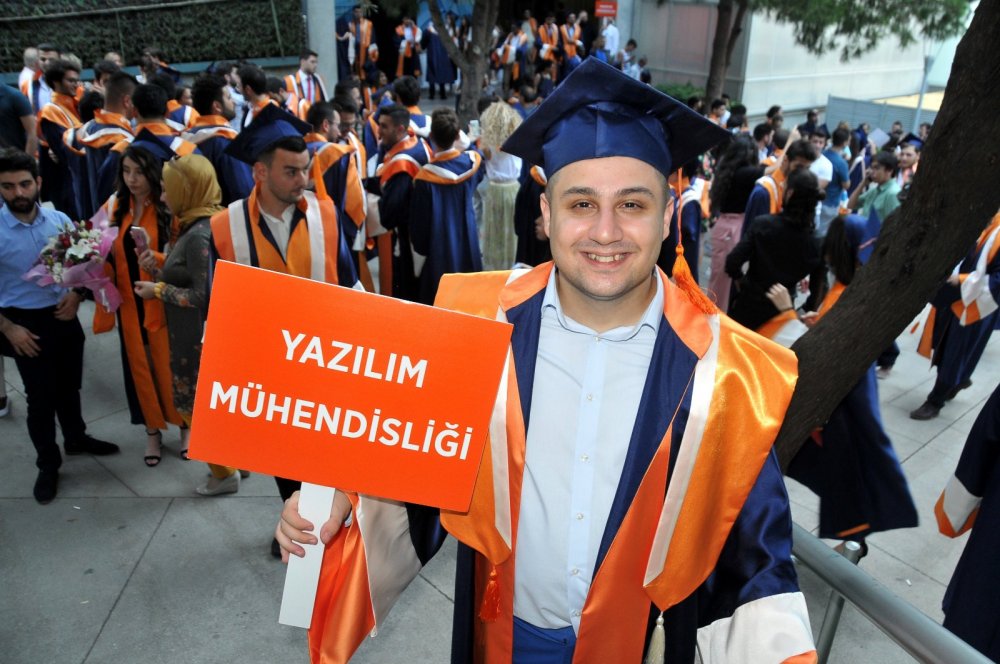 Eğitimini burslusu olarak tamamlayan Manisalı Mert Ünsal ise Yazılım mühendisliğinin iş garantisi olan Türkiye'de ender mezunlarından bir genç. Mert Ünsal sevincini Manisa'dan mezuniyet törenine gelen baba-annesi Saim-Hatice Ünsal ile paylaştı.