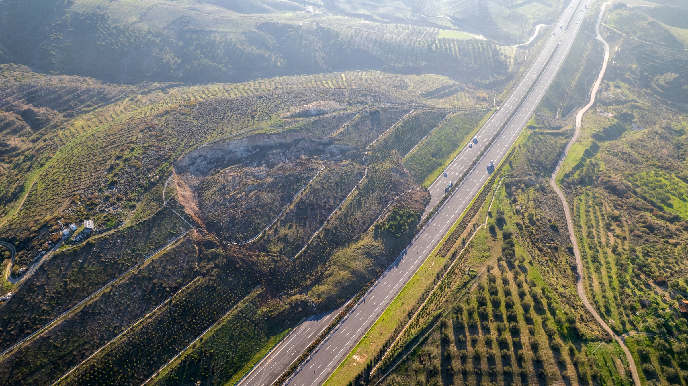 Toprak kayması sonucu otoyolun 3 şeridi tamamen kullanılamaz hale gelirken, jandarma ekipleri güvenlik gerekçesiyle heyelan olan bölgeyi trafiğe kapatırken ulaşım tek şeritten kontrollü olarak sağlanıyor.