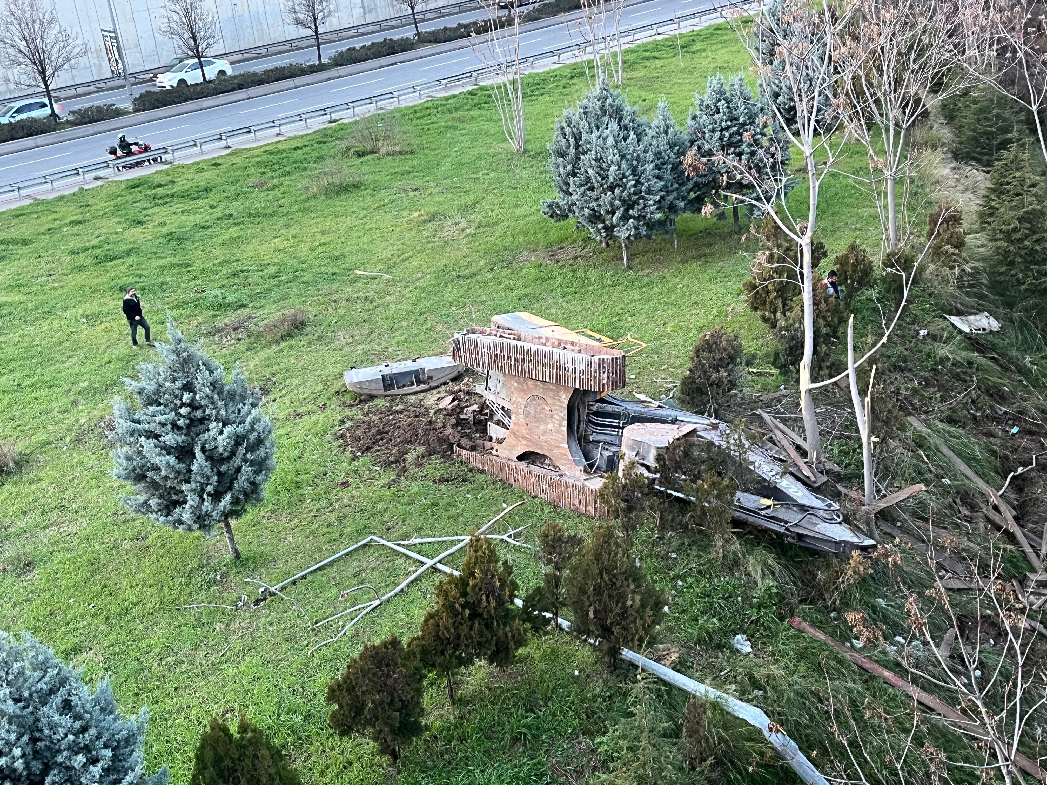 Çarpmanın şiddetiyle savrulan otomobil, yol kenarındaki bariyerleri kırarak köprüde asılı kaldı. Kamyonun kasasında yüklü bulunan iş makinesi ise köprüden aşağı düştü. Kazayı görenlerin ihbarı üzerine olay yerine polis, itfaiye ve sağlık ekipleri sevk edildi.