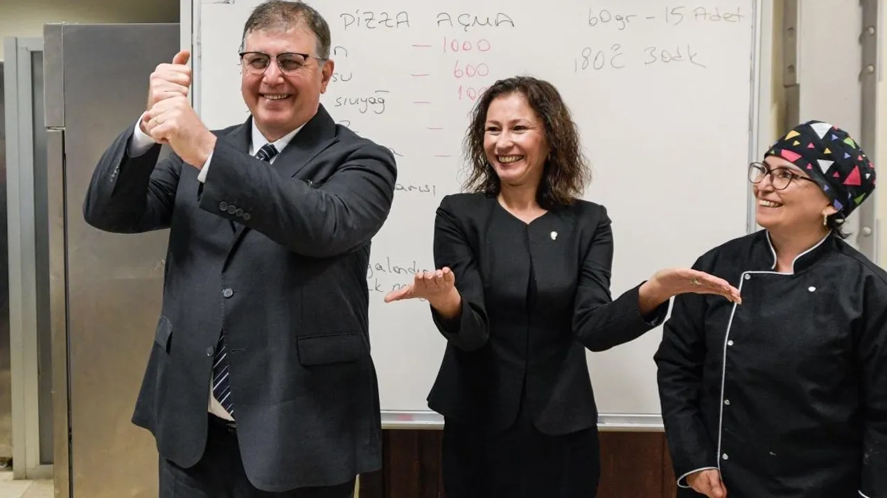 İzmir Büyükşehir Belediye Başkanı Dr. Cemil Tugay, 3 Mart Dünya Kulak ve İşitme Günü’nde Meslek Fabrikası Pastacı Çırağı Kursu’nda eğitim gören sağır ve işitme engelli kursiyerlerle bir araya geldi.İZMİR (İGFA) - İşaret dili kullanarak kursiyerlerle iletişim kuran İzmir Büyükşehir Belediye Başkanı Dr. Cemil Tugay, Türkiye'de ilk kez hayata geçirilecek önemli bir projeyi duyurdu. Buna göre Büyükşehir bünyesinde toplam yedi işaret dili çevirmeni, Eşrefpaşa Hastanesi işlemlerinde sağır ve işitme engelli vatandaşlara görüntülü ve birebir hizmet verecek.