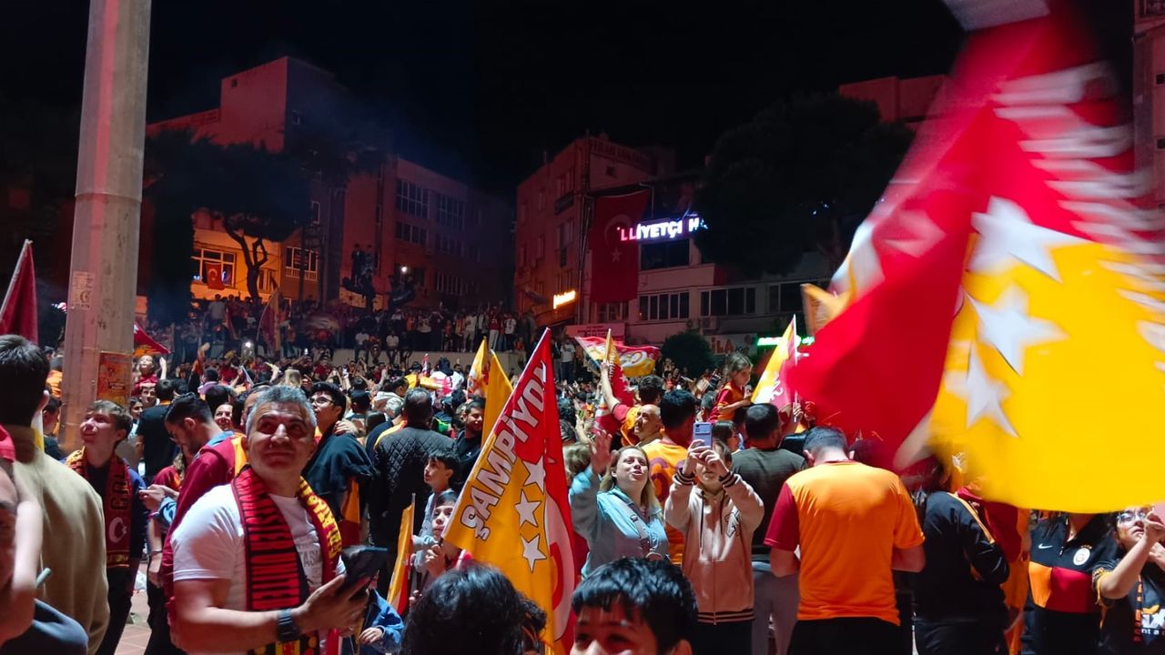 Aliağa'daki Galatasaray taraftarları, şampiyonluğun ardından kentin en önemli meydanlarından biri olan Demokrasi Meydanı'nı doldurdu. Formaları, bayrakları ve atkılarıyla gelen taraftarlar, meydanı adeta bir karnaval alanına çevirdi. Tezahüratlar ve marşlarla gecenin sessizliğini bozan sarı-kırmızılı taraftarlar, yaktıkları meşalelerle de geceyi aydınlattı. Galatasaray taraftarları araçlarıyla kent merkezinde şampiyonluk tur attı.