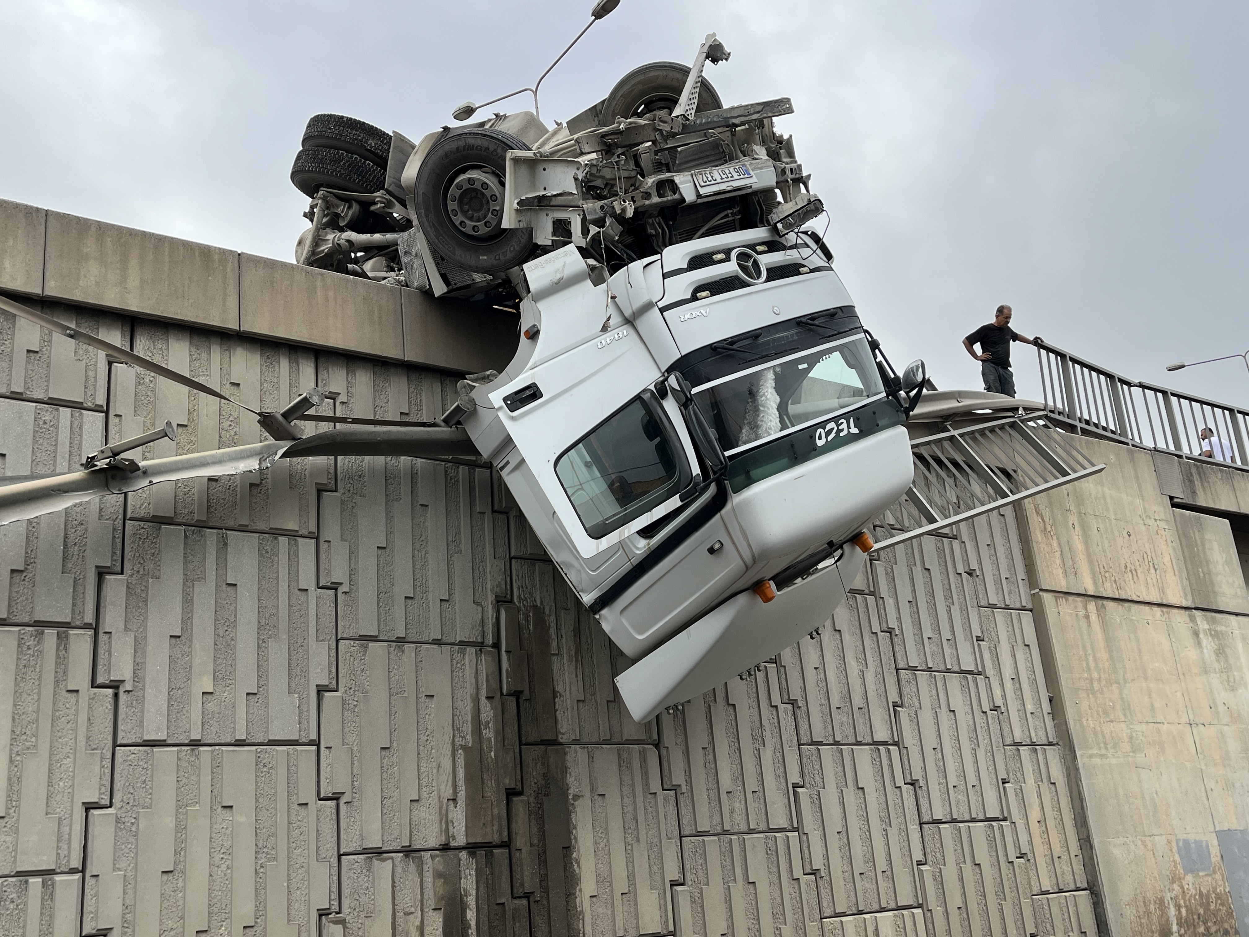 Öte yandan kaza anı ise bir güvenlik kamerasınca kaydedildi. Görüntülerde, viyadükte seyir halindeki tırın kontrolden çıkarak önce sola sonra sağa manevra yapıp viyadükten aşağıya sarkarak askıda kaldığı anlar yer aldı.