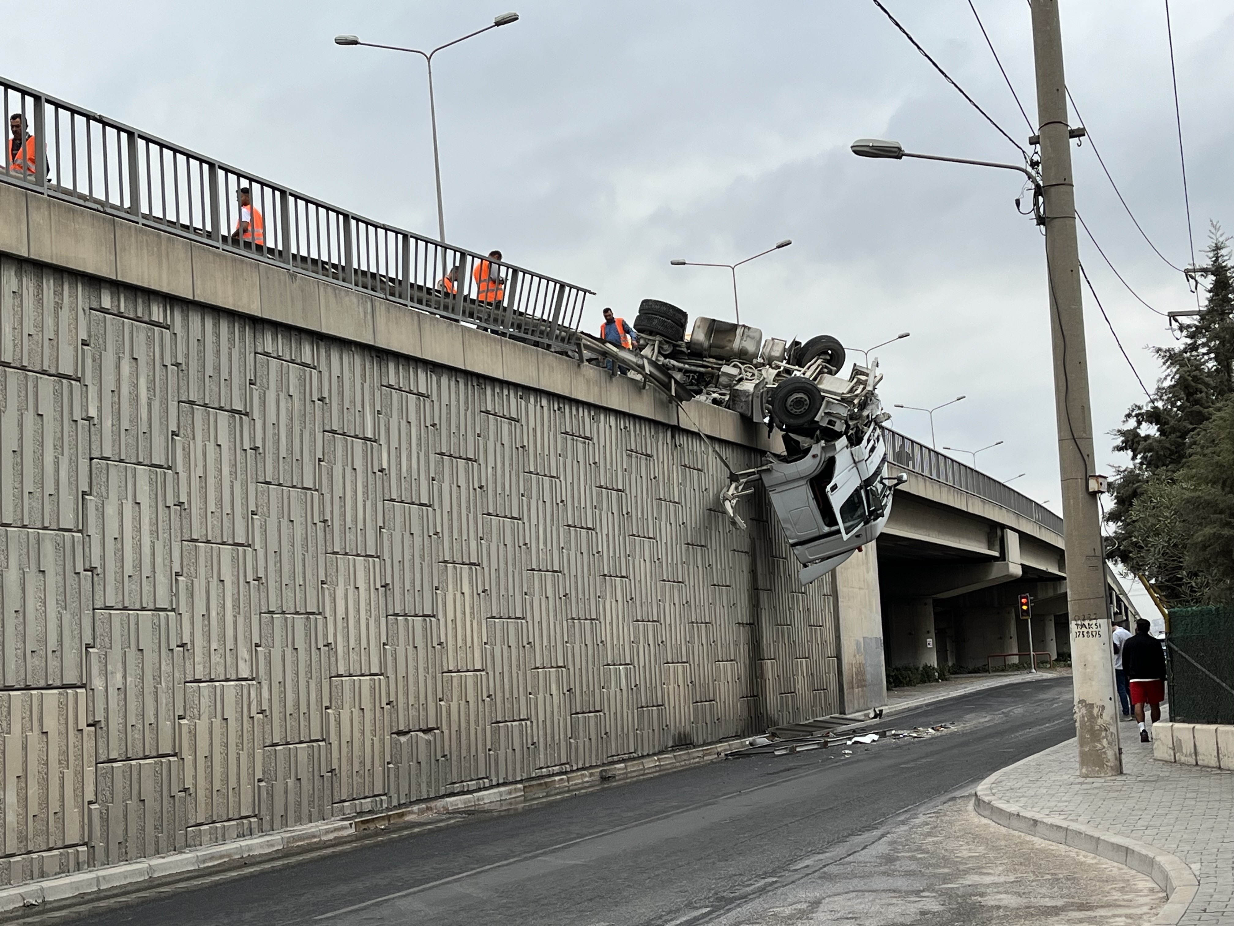 Kaza, 29 Eylül günü saat 10.00 sıralarında Bornova ilçesi Ankara Caddesi 4. Sanayi kavşağı üzerindeki viyadükte meydana geldi. Liman yönüne giden 06 FGT 332 plakalı taş yüklü tır, yağmurdan kayganlaşan yolda sürücüsünün direksiyon hakimiyetini kaybetmesi sonucu devrildi. Tırın kupası, yaklaşık 8 metrelik viyadükten aşağıya sarkarak askıda kaldı.
