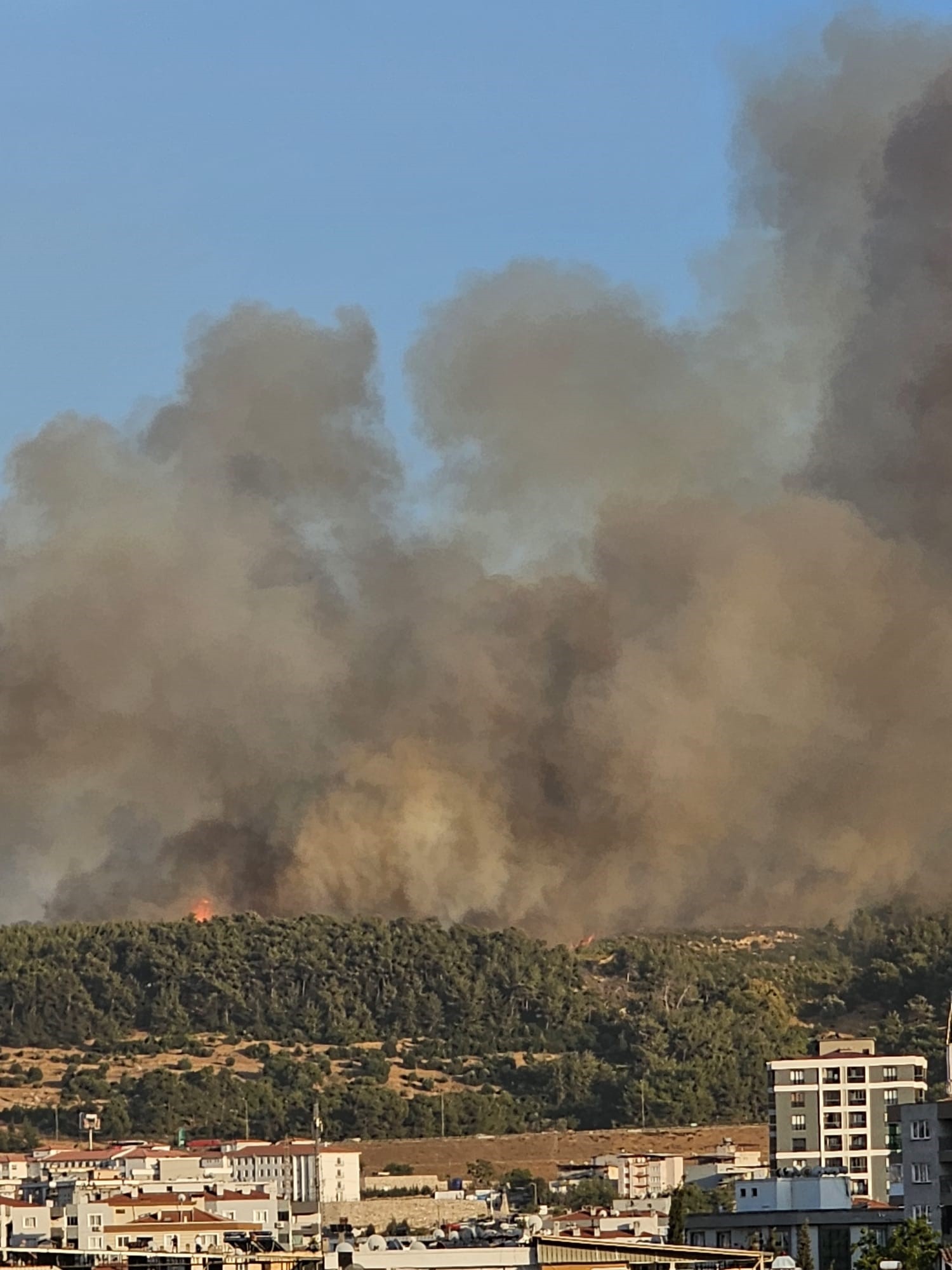 Aliağa'da ise otluk ve makilik yangını var. Alevler, Çoraklar mahallesine yaklaştı. Yangının Aliağa Organize Sanayi Bölgesi’ne sıçramasını önlemek için bölgede güvenlik önlemleri artırıldı. Yangına havadan ve karadan müdahalesi sürüyor.