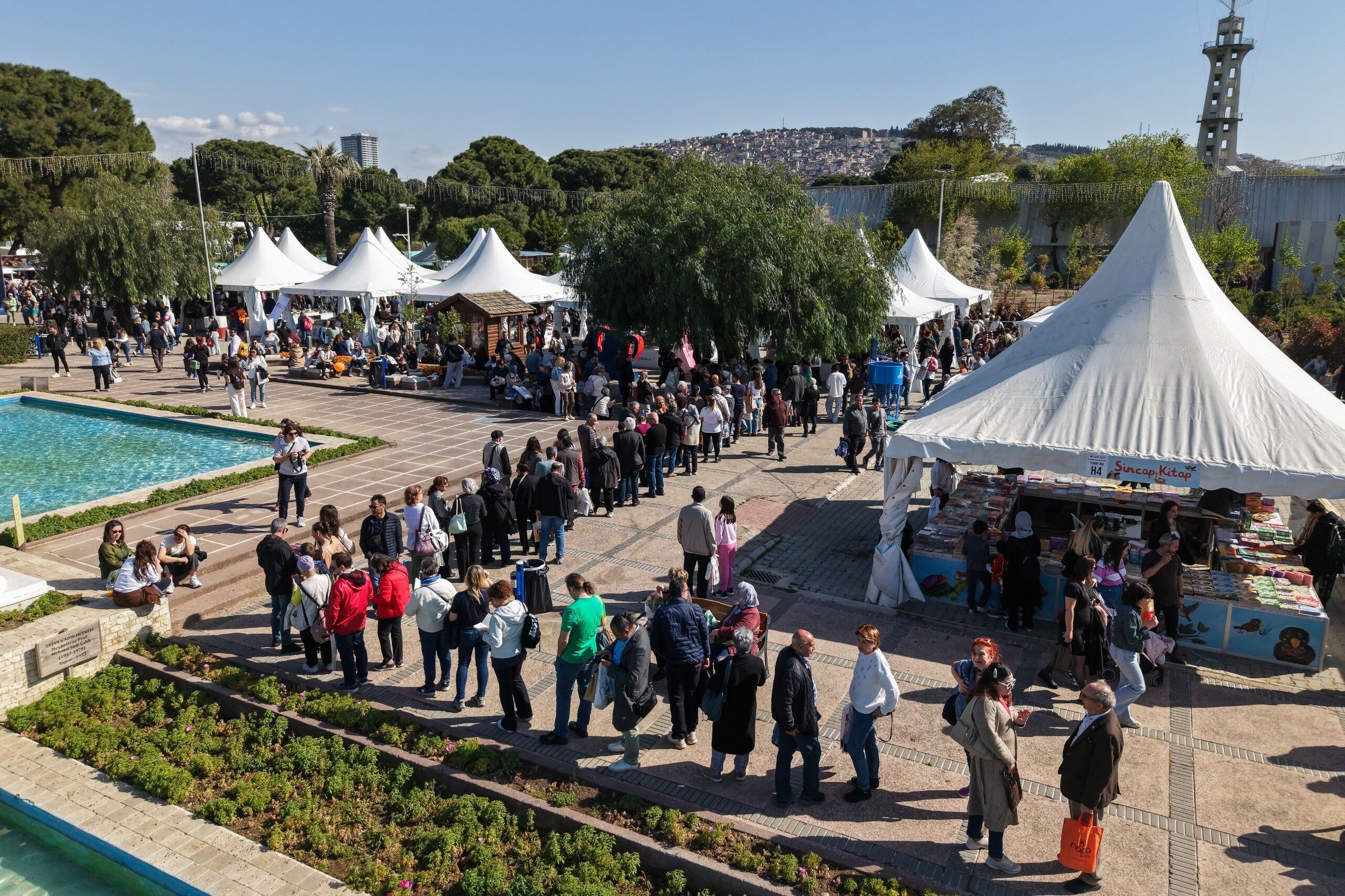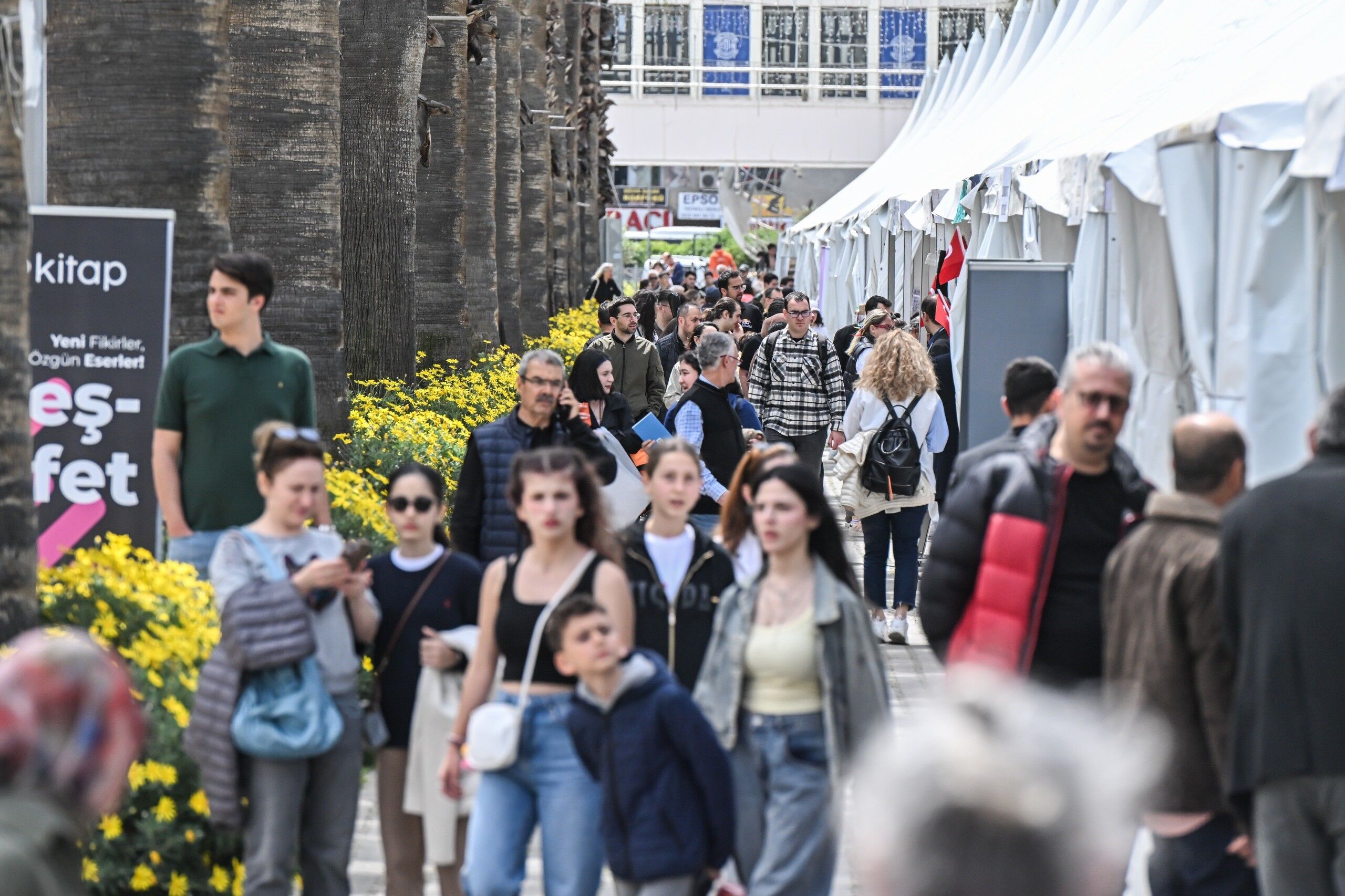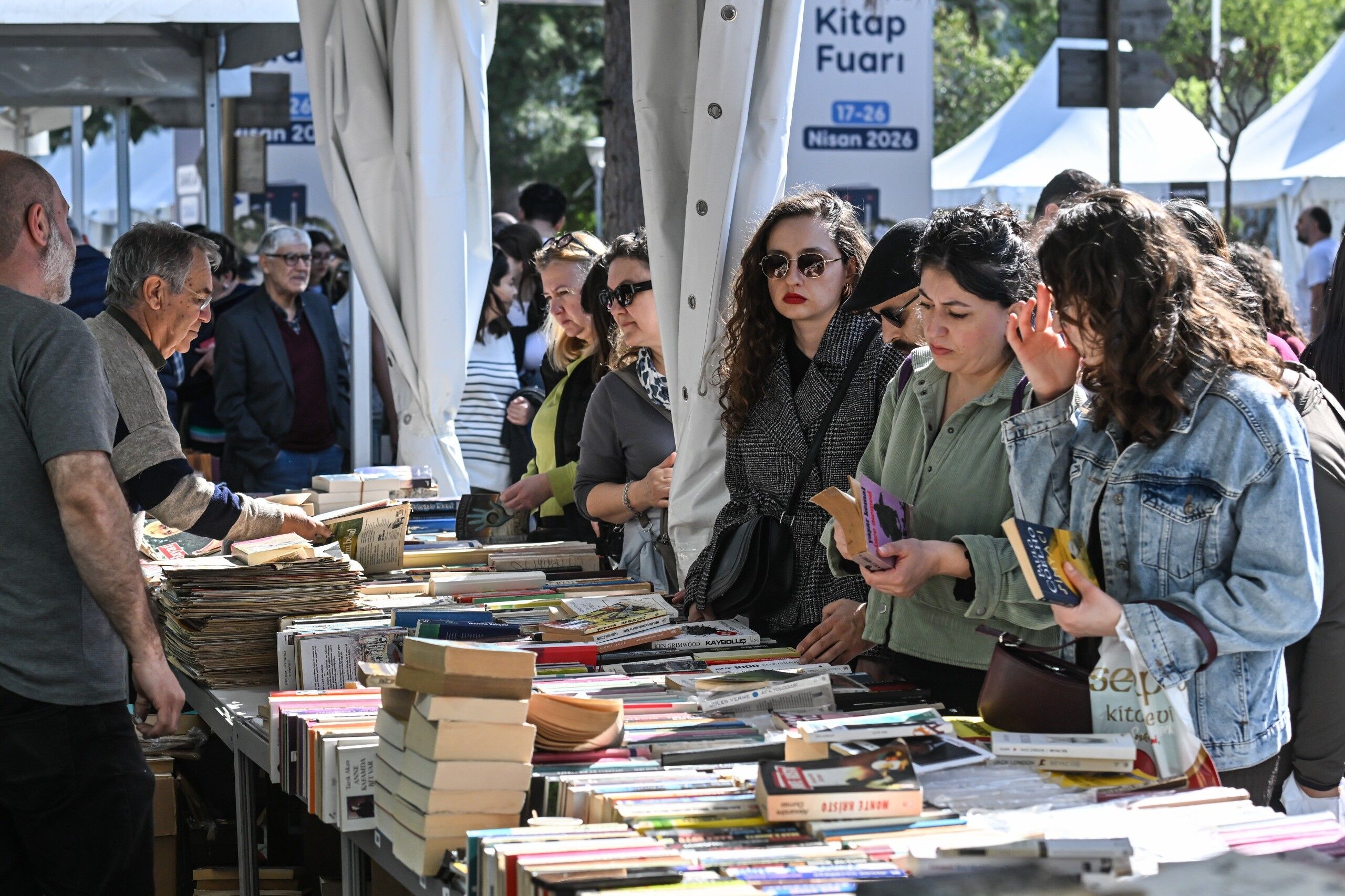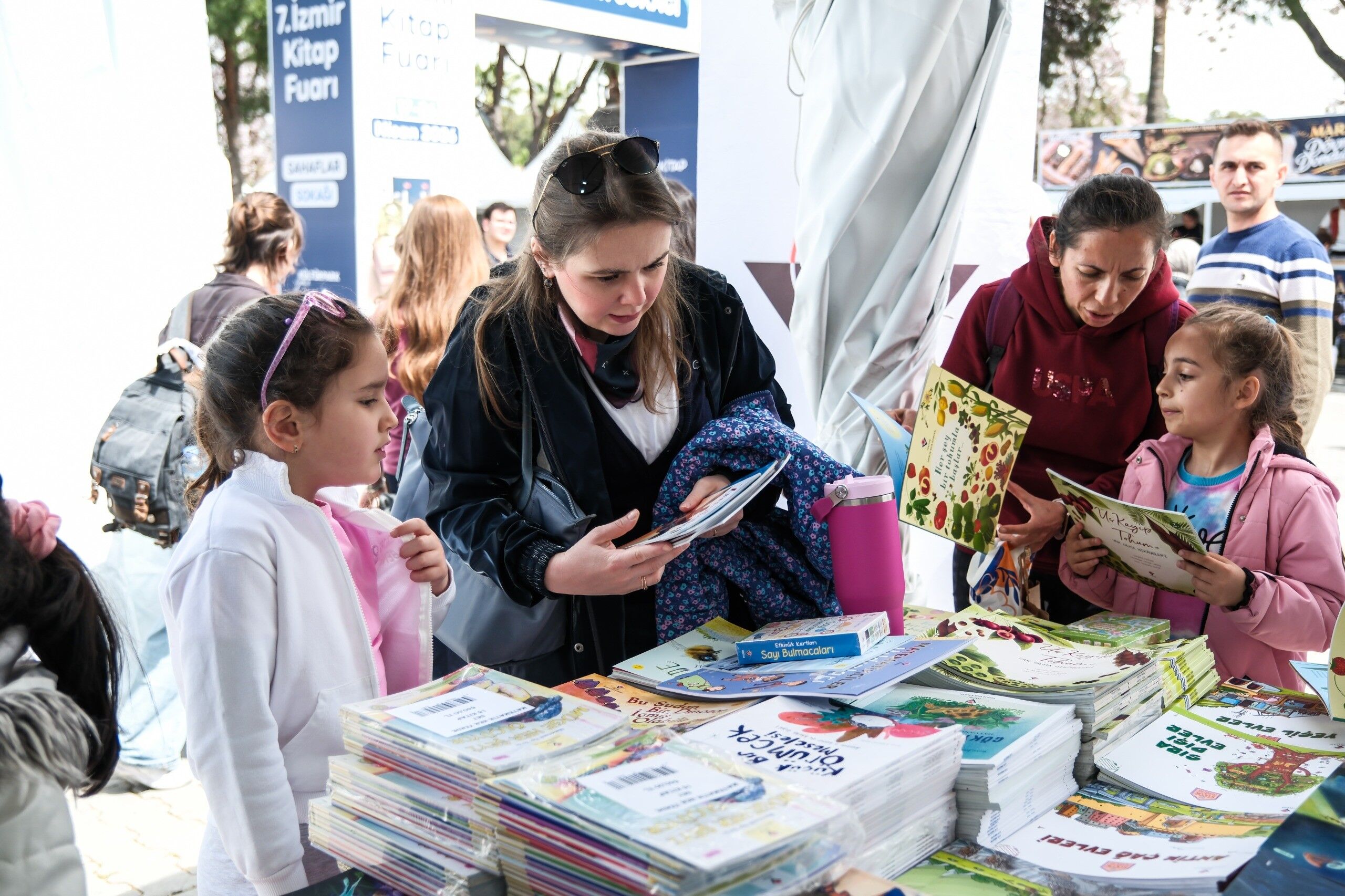 İzmir Büyükşehir Belediyesi'nin ev sahipliğinde, İZFAŞ ve TACT Fuarcılık iş birliğiyle 17-26 Nisan tarihleri arasında Kültürpark'ta düzenlenen İZKİTAP - 7. İzmir Kitap Fuarı, yayınevleri, sahaflar, eğitim ve kültür kurumları ile sivil toplum kuruluşlarını bir araya getirirken; yaklaşık 200 katılımcı ve 400'e yakın yazar, şair, gazeteci ve akademisyeni okurlarla buluşturuyor. Fuar kapsamında söyleşi ve imzalarla birlikte toplamda 500'e yakın etkinlik düzenleniyor. Fuarın ikinci gününde, hafta sonu güzel havayı da fırsat bilen kitapseverler, Kültürpark'ı doldurdu. Öğrenciler, çocuklarıyla birlikte fuara gelen aileler, her yaştan İzmirli, edebiyatla dolu bir gün yaşadı. Özellikle söyleşi alanları ve imza stantlarında kuyruklar oluştu. Okurlar hem sevdikleri yazarlarla bir araya gelme hem de yeni yayımlanan kitapları keşfetme fırsatı buldu.
