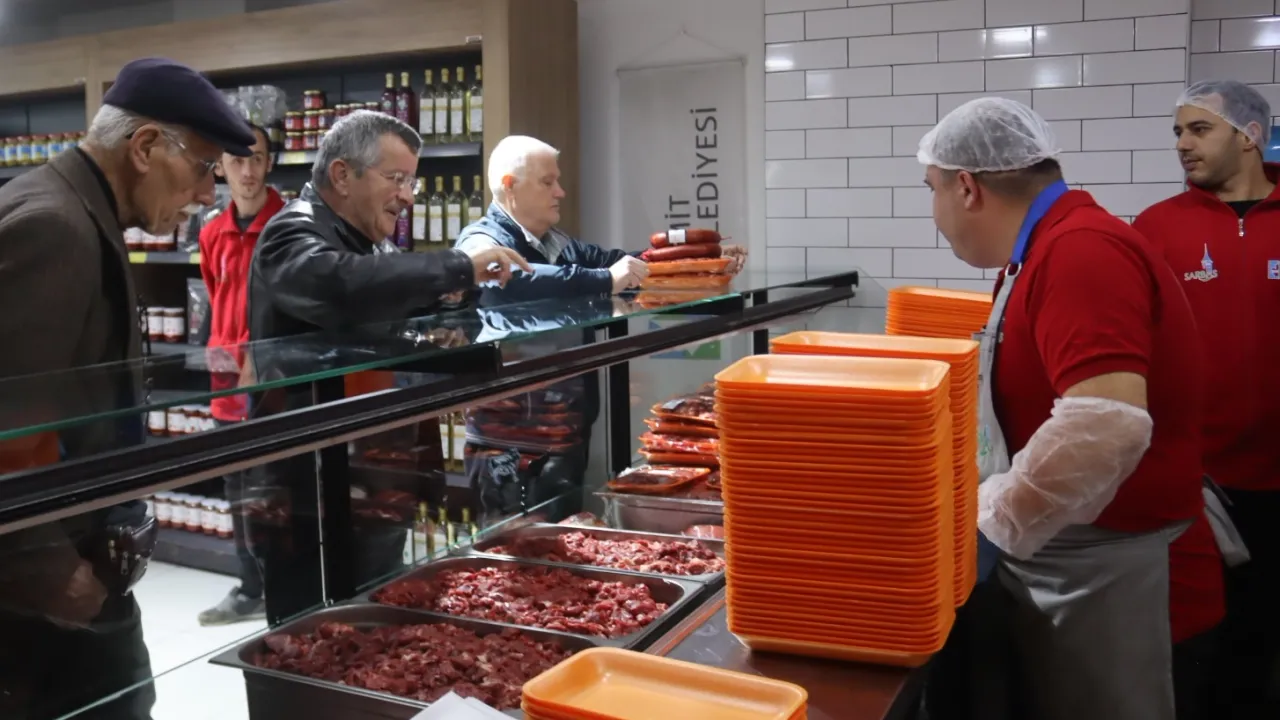 Sabah saatlerinden itibaren uzun kuyrukların oluştuğu Halk Et noktasında vatandaşlar, piyasanın altında fiyatlarla et alışveriş yapıyor. Kıyma 449, kuşbaşı 489, kontrfile 599, antrikot 699, bonfile 799, dana sucuk 449, manda sucuğu ise 499 Lira olarak satışa sunuldu.