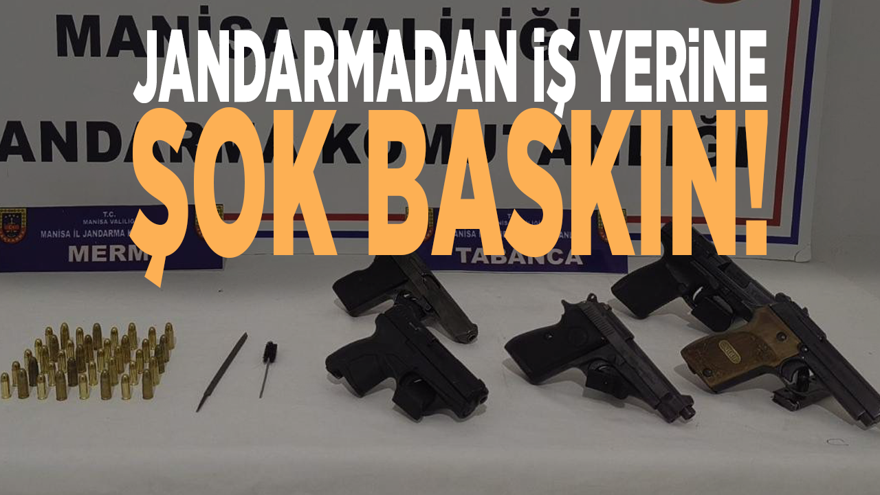 Manisa İl Jandarma Komutanlığı İstihbarat ve KOM Şube Müdürlüğü ile Yunusemre İlçe Jandarma Komutanlığı ekiplerince B.A. (E/34) isimli şahsın işyerinde yapılan aramada 5 adet ruhsatsız tabanca ile 70 adet tabanca fişeği ele geçirildi.