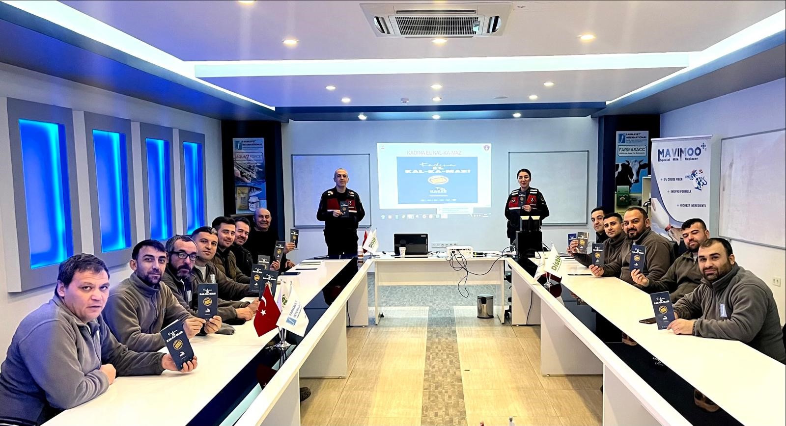 Salihli İlçe Jandarma Komutanlığı, kadına yönelik aile içi şiddetle mücadele kapsamında çalışmalarını sürdürüyor. Bu çerçevede Aile İçi Şiddetle Mücadele ve Çocuk Kısım Amirliği ekipleri, Salihli Organize Sanayi Bölgesi’nde(OSB) faaliyet gösteren ve yaklaşık 35 ülkede ihracat faaliyeti bulunan bir firmadaki, erkek personele Kadına El KAL-KA-MAZ projesi hakkında bilgi verilirken, kadın personele ise KADES uygulamasının tanıtımı, kullanımı, uygulamanın sağladığı kolaylıklar anlatıldı.