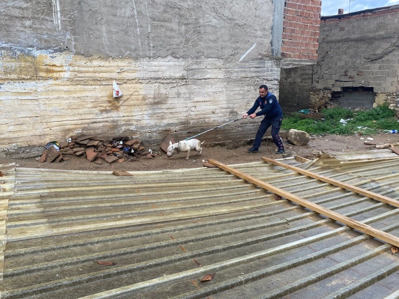 İhbar üzerine olay yerine itfaiye ve polis ekipleri sevk edildi. Yapılan incelemede köpeğin kapalı inşaat çukurunda olduğu tespit edildi. Üzeri tamamen örtülü olan alana ulaşmakta güçlük çeken ekipler, plastik kaplamayı kontrollü şekilde açarak merdiven yardımıyla çukura indi.