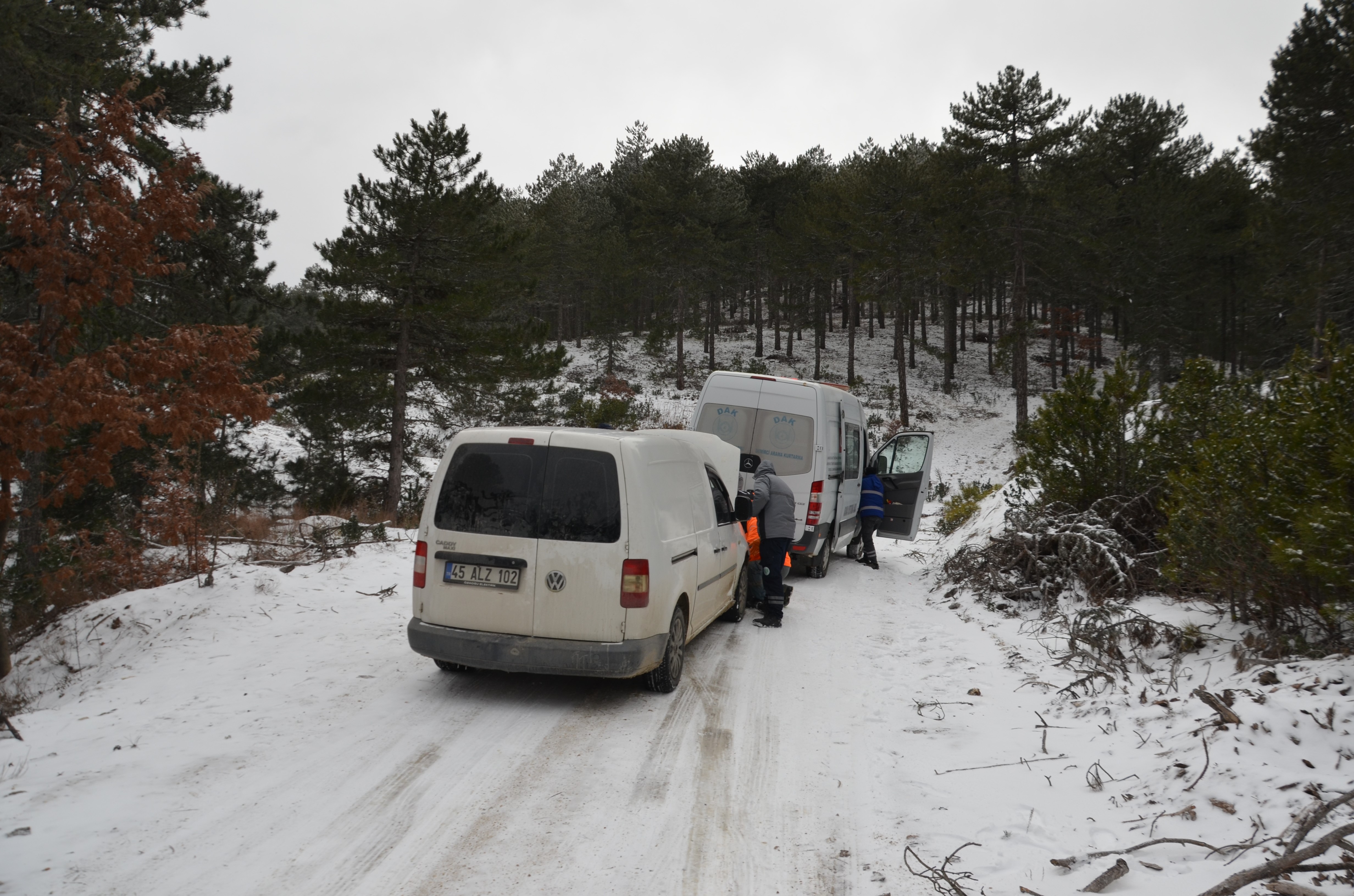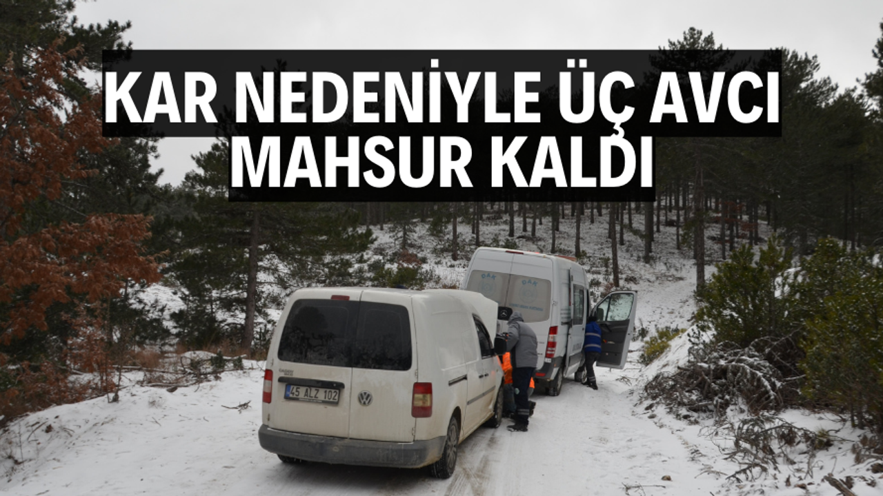 MANİSA (İHA) - Alaşehir Avcılar ve Atıcılar Kulübü'nün eski başkanı Murat Yılmaz ile beraberindeki İsmail Gelin ve Çağlar Gökkaya, karlı havada av yapmak için Demirci Dağı’na geldi. 1530 rakımlı Hışırca Kaya mevkiinde yoğun kar yağışı nedeniyle araçlarıyla yolda kalan avcılar, Demirci Belediyesi’nden yardım talebinde bulundu.
