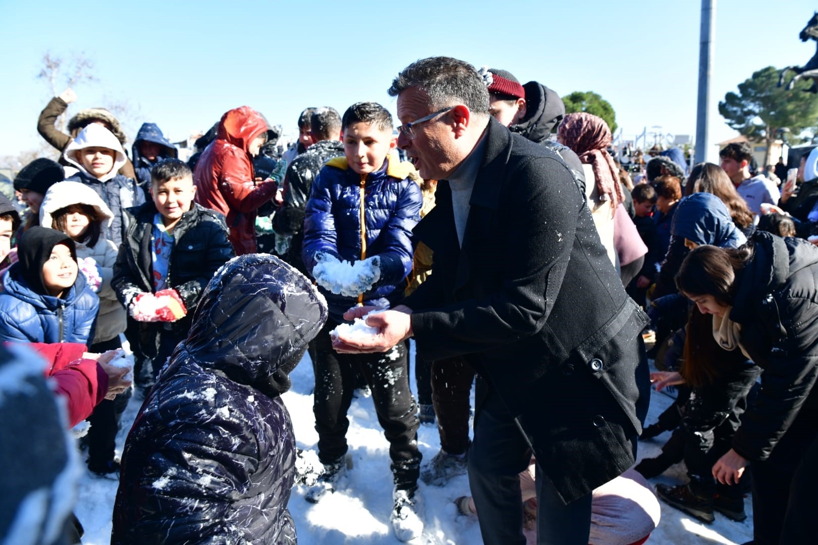 Belediye Başkanı Ahmet Öküzcüoğlu, "Alaşehir merkez ve ova mahallelerimize iklim şartları nedeniyle genellikle kar yağmıyor. Çocuklarımızın ve vatandaşlarımızın bu özlemini gidermek için dağlarda yağan karı meydanımıza getirdik. Daha önce de benzer bir etkinlik yapmıştık ve yoğun ilgi görmüştük. Bu yıl da beş kamyon kar getirerek çocuklarımızın kar topu oynamasını, kardan adam yapmasını sağladık. Çocuklarımızın yüzünün gülmesi bizim için çok kıymetli. Onlar gülsün, biz mutlu olalım" dedi.