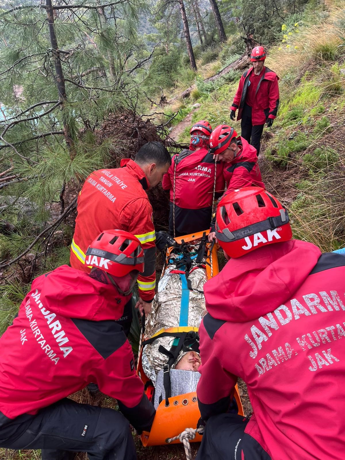 MUĞLA (İHA) - Edinilen bilgilere göre, Cihan A. (26), arkadaşının kayalık alana düşen çantasını almak isterken dengesini kaybederek kayalıklardan aşağı düştü. Çevrede bulunan vatandaşların ihbarı üzerine bölgeye Jandarma Arama Kurtarma (JAK) Ölüdeniz Timi, UMKE ve itfaiye ekipleri sevk edildi. Zorlu arazi şartlarına rağmen kısa sürede olay yerine ulaşan ekipler, yaralı gence kayalık alanda müdahale etti. Dikkatli ve koordineli çalışma sonucu bulunduğu yerden çıkarılan Cihan A., sağlık ekiplerine teslim edildi. Olay yerinde ilk müdahalesi yapılan yaralı, ambulansla Fethiye Devlet Hastanesi'ne kaldırılarak tedavi altına alındı.