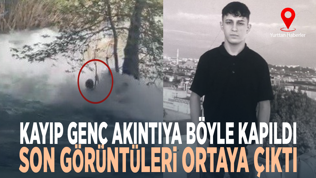 Öte yandan kaybolan gencin suya atladıktan sonraki son anlarına ait cep telefonu görüntüleri ortaya çıktı. Görüntülerde, gencin akıntıya kapıldığı, sürüklenmemek için sudaki ağacın dallarına tutunduğu, ancak bir süre sonra gücünü kaybederek akıntıya direnemediği ve gözden kaybolduğu anlar yer aldı.