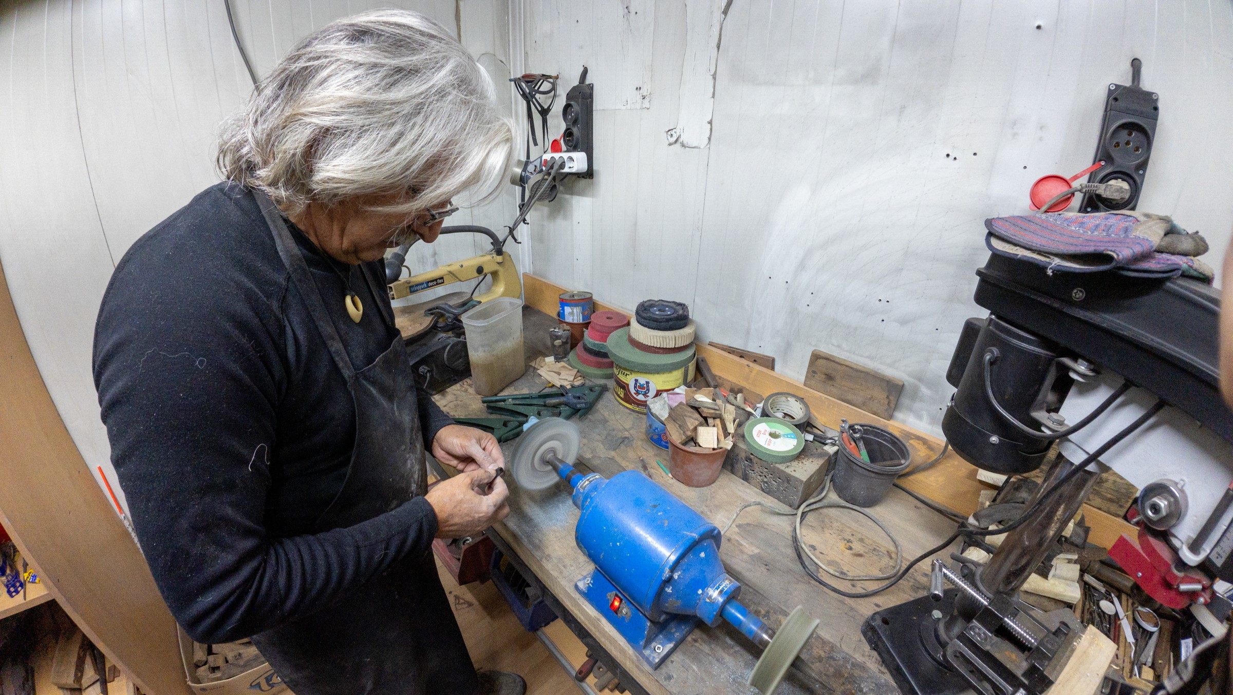 Manisa'nın Şehzadeler Kaymakamı Fatih Genel, kendisini ziyaret eden gazetecileri atölyesinde misafir etti. Geleneksel el sanatlarına olan ilgisiyle tanınan Kaymakam Genel, atölyesinde konuklarına hem bıçak hem de zihgir yapımını uygulamalı olarak gösterdi.