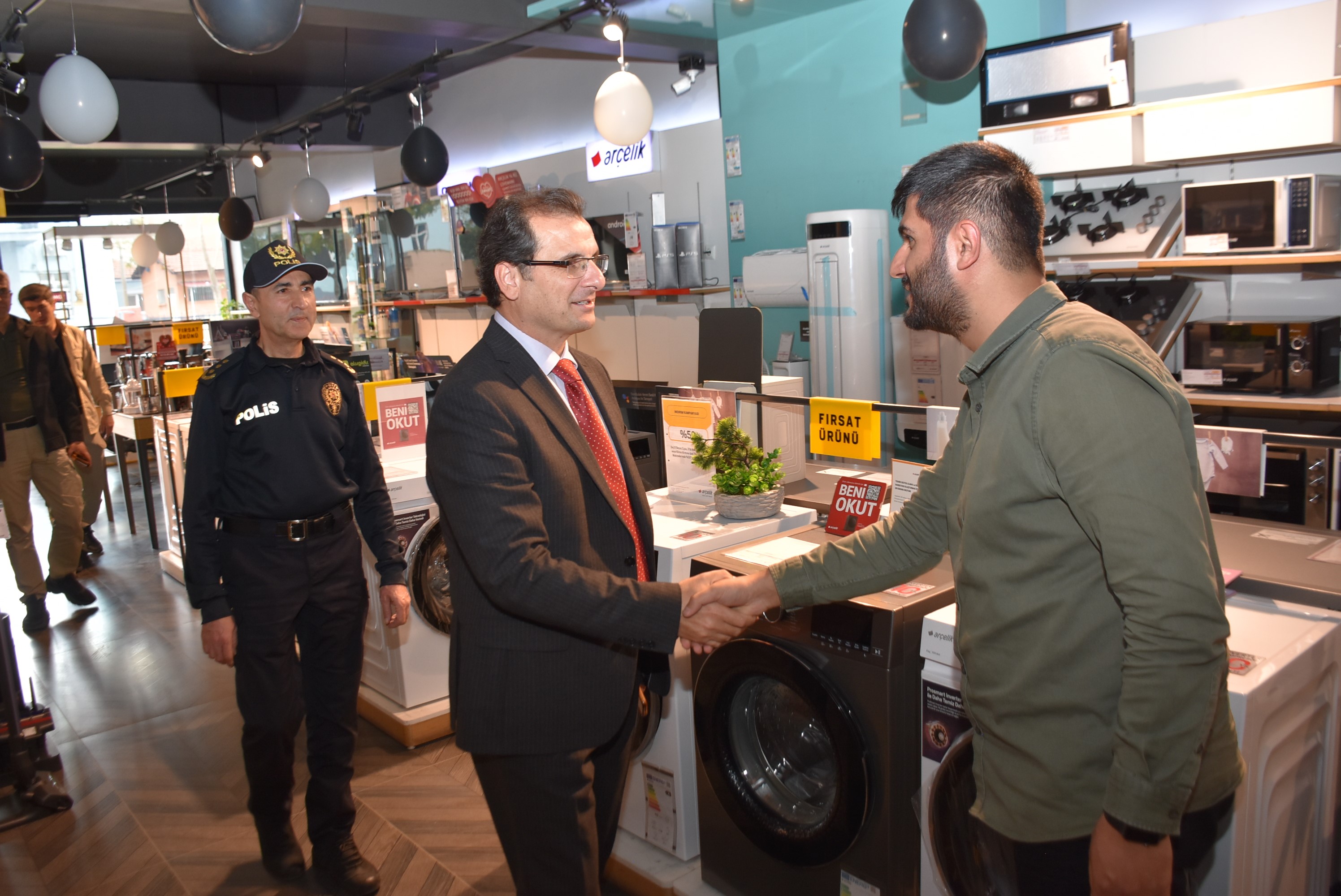 Kaymakam Güldoğan’a esnaf ziyaretinde İlçe Emniyet Müdürü Burhan Demirkıran da eşlik etti.