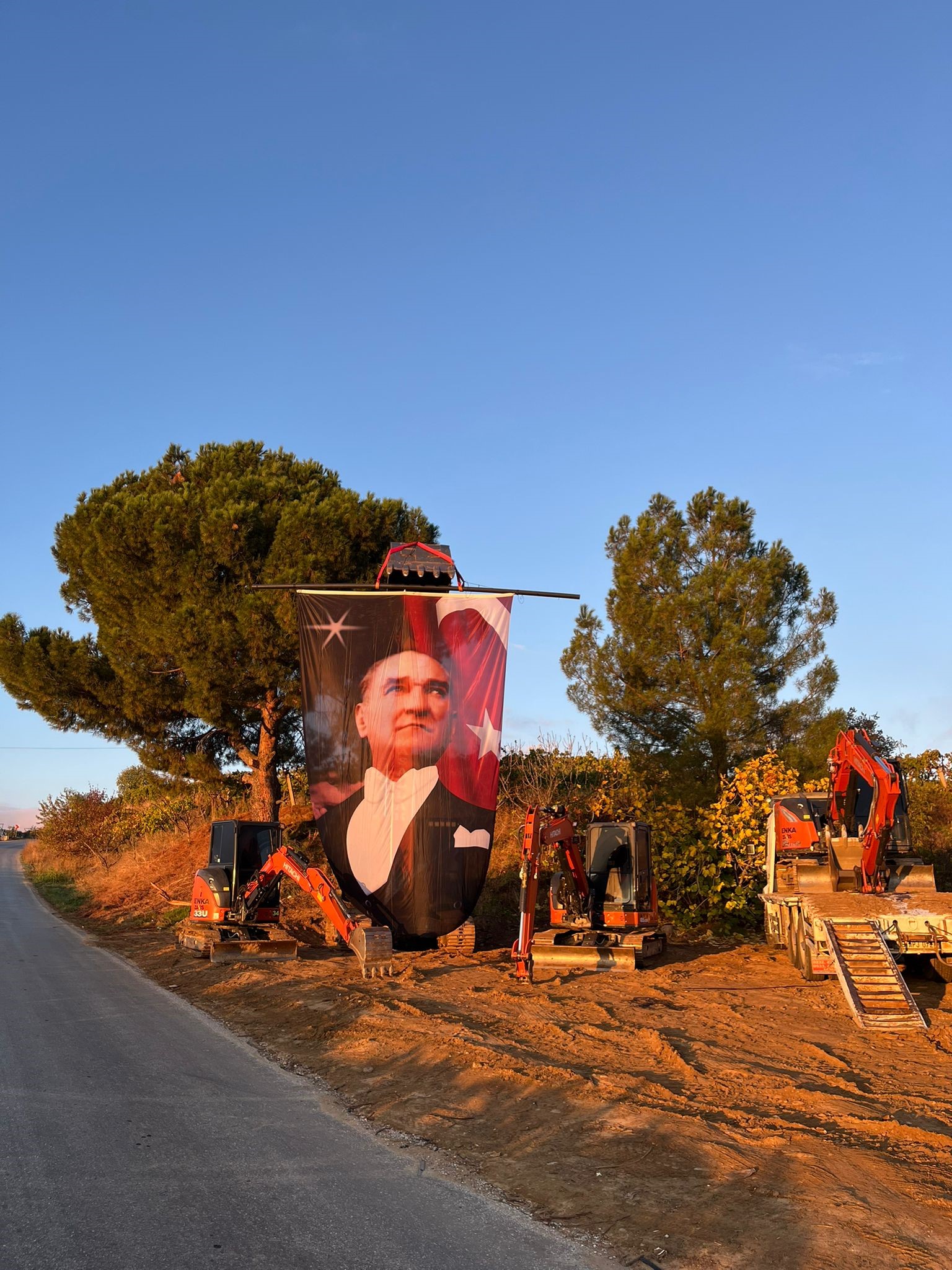 Cumhuriyet Bayramı coşkusunu yaşadığını belirten Erdem Aydın, "Atatürk’ü çok seviyorum. Bu anlamlı günde sevgimi göstermek için aldığım 4x6 ebadındaki Atatürk posterini kepçeme monte ederek köy girişine astım. Gelip geçen herkes tarafından görülüyor. Bugünlerimizi Atatürk’e borçluyuz. Nice 102. Cumhuriyetler dilerim" dedi.