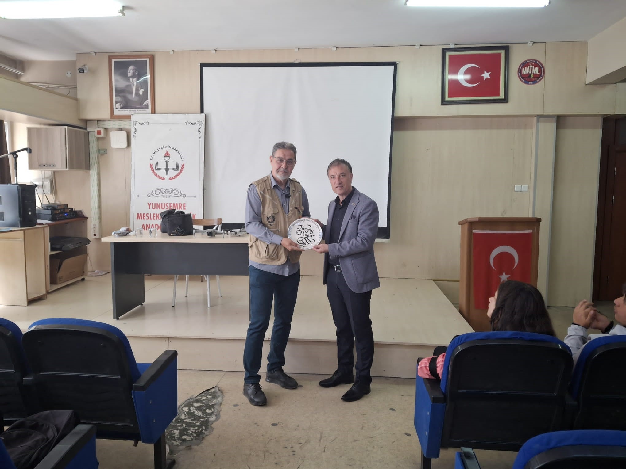Eğitim sonunda Okul Müdürü Can tarafından Turgay Duyar'a teşekkür ederek, hediye takdiminde bulundu.