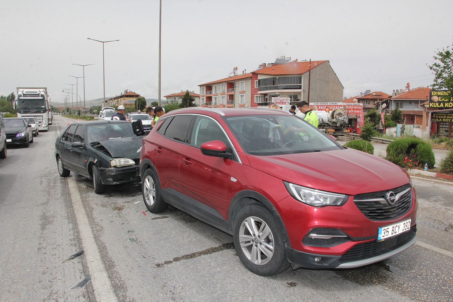Kaza, saat 11.45 sıralarında İzmir-Ankara D300 karayolu Hisar kapı kavşağında meydana geldi. Edinilen bilgiye göre İzmir’den Uşak istikametine seyir halinde olan İsmail Ö. idaresindeki 35 HAK 71 plakalı otomobil, aynı yönde seyir halindeyken kavşakta kırmızı ışıkta bekleyen Filiz Ç. idaresindeki 35 BCY 392 plakalı otomobile çarptı. Çarpmanın şiddetiyle 35 HAK 71 plakalı araç sürücüsü İsmail Ö. yaralandı.