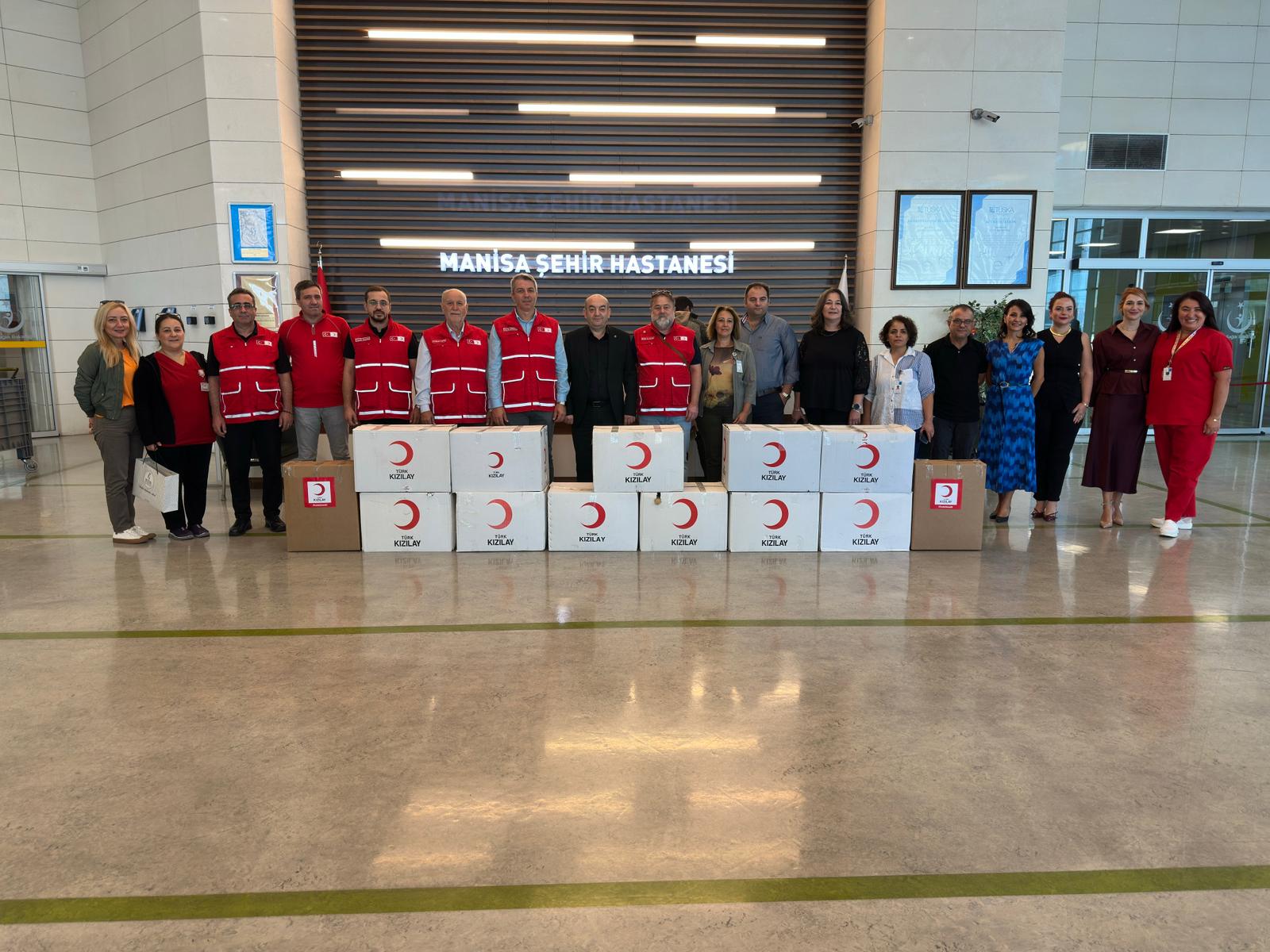 Kızılay ekipleri tarafından hazırlanarak kolilere konulan pijama, terlik, iç çamaşırı, mama önlüğü, çorap, bebek bezi ve bebek aksesuarları, Türk Kızılay Manisa İl Merkezi Başkanı Öner Gürsel ve yönetim kurulu üyeleri tarafından, Manisa Şehir Hastanesi Başhekimi Serkan Saka ve hastane yöneticilerine ulaştırıldı.
