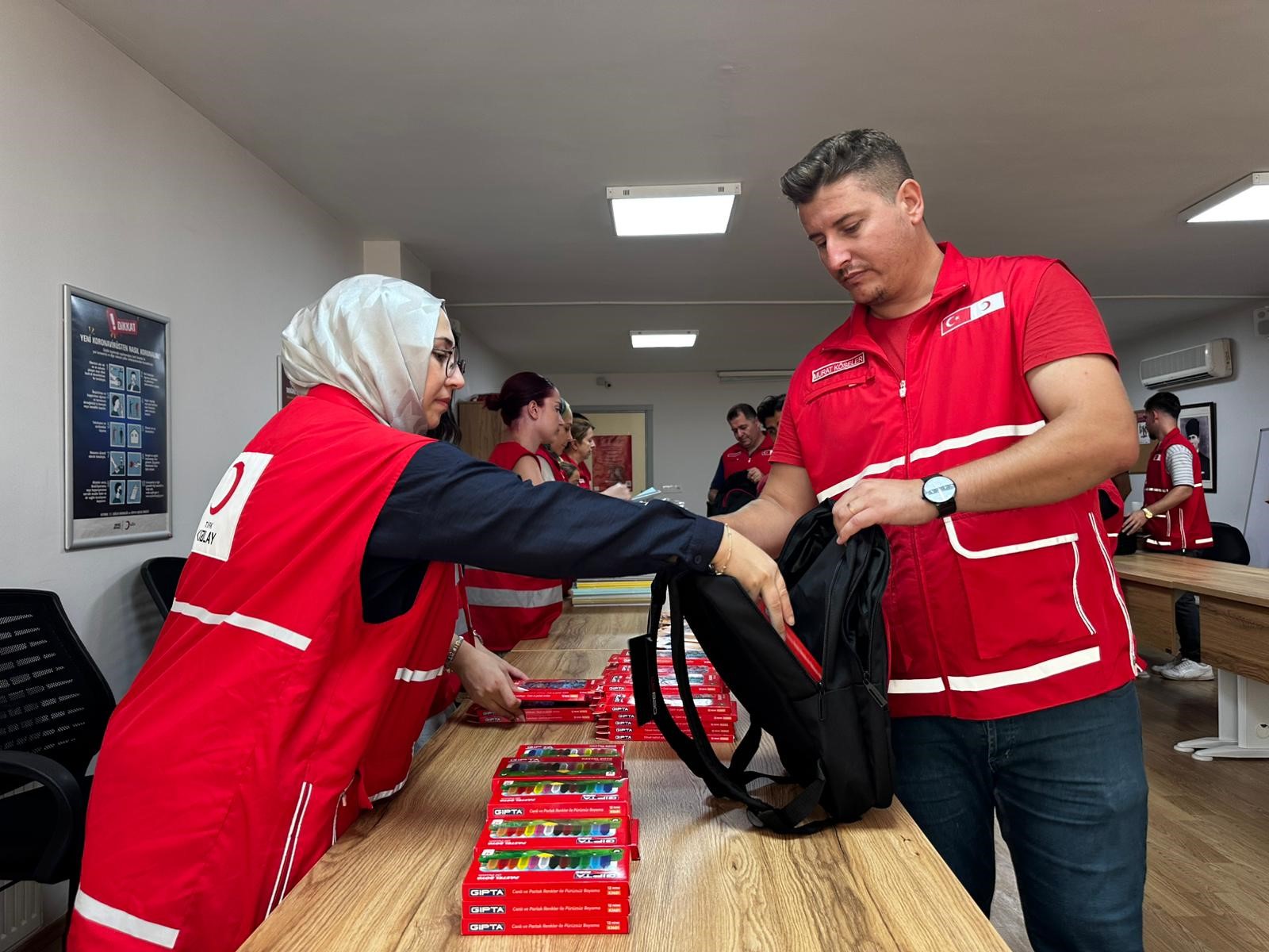 Kızılay Manisa Gönüllü Merkezinde, Türk Kızılay Genel Merkez Denetim Kurulu Üyesi Selman Keresteci, Türk Kızılay Manisa İl Merkezi Başkanı Öner Gürsel, yönetim kurulu üyeleri, Kızılay personeli ve gönüllüler, kırtasiye malzemelerini okul çantalarına yerleştirdi. Hazırlanan çantalar, ilçe şube araçlarına yüklenerek 2025-2026 yılı Eğitim ve Öğretim yılı başlamadan öğrencilere ulaştırılmak üzere yola çıkarıldı.
