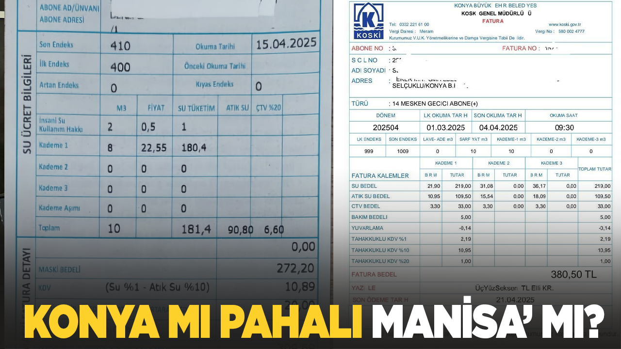 Bakın buraya aynı dönemde aynı kullanımı olan Manisa'dan ve Konya'dan birer su faturası bırakıyorum.