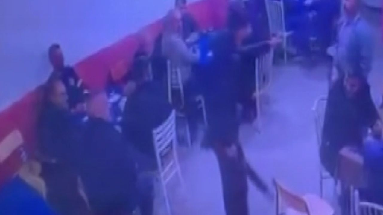 Yaşanan arbede sırasında tüfek kazara ateş aldı. O anlar güvenlik kamerasıyla kaydedildi.