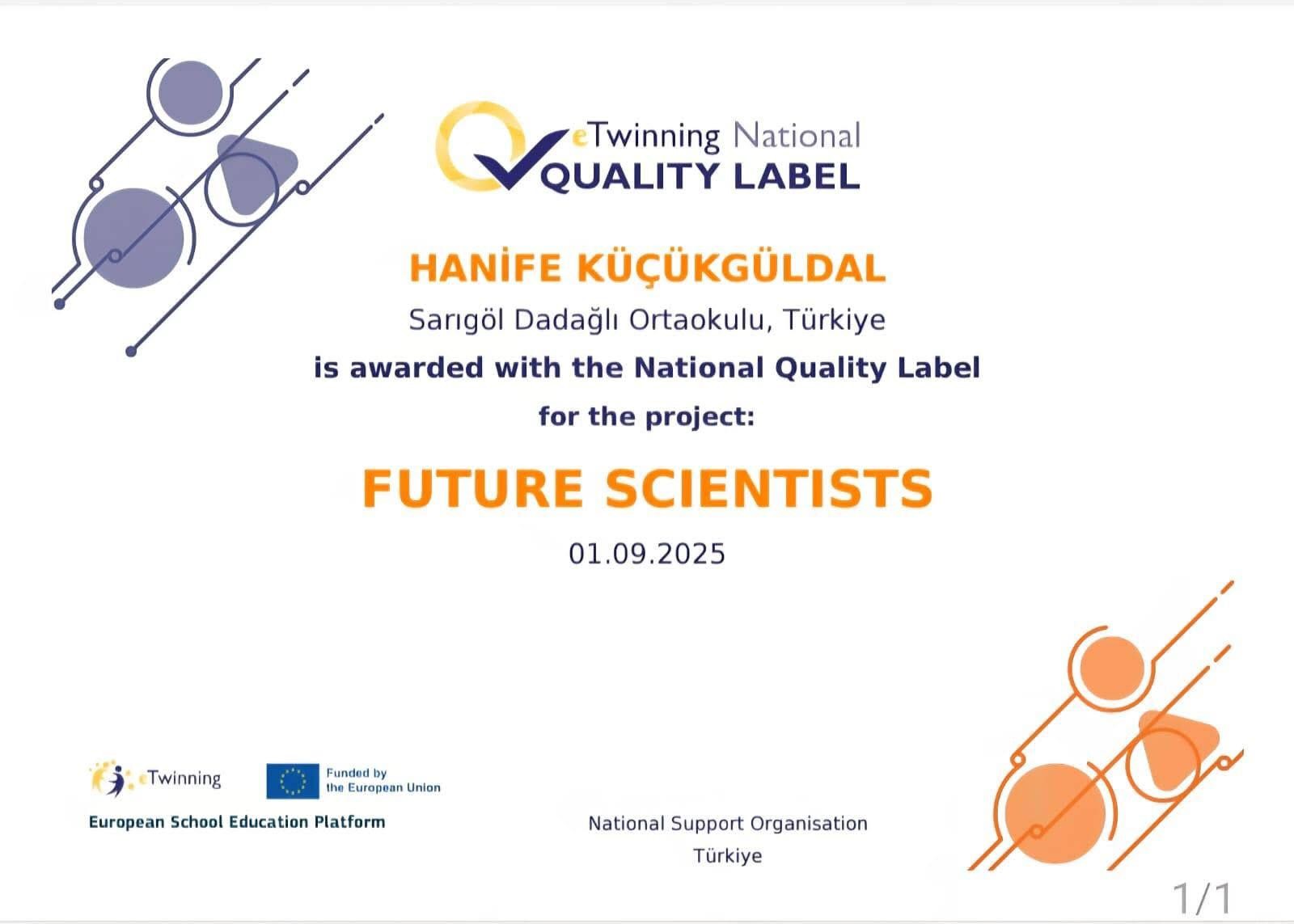 Ayrıca Dadağlı Ortaokulu İngilizce öğretmeni Hanife Küçükgüldal'ın, 6-A sınıfı ile birlikte yürüttüğü “Future Scientist” projesi de ulusal kalite etiketi ile ödüllendirildi. Bu projede öğrenciler deneyler yaparak bilimsel süreç becerilerini geliştirdi, teknoloji ve yapay zekâyı kullanarak yabancı dil pratiği kazandı.