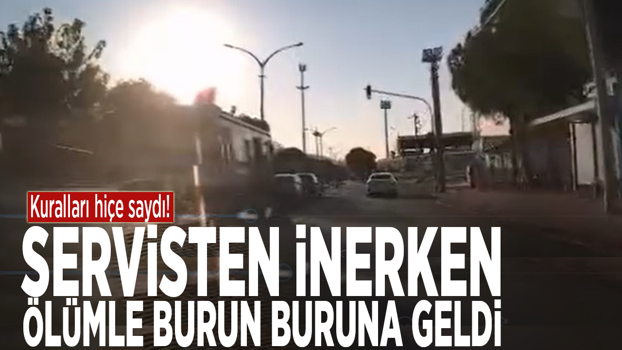 Kural ihlali sonucu yaşanan olay, servisin yanından geçen aracın kamerasına saniye saniye yansıdı. Görüntülerde kadının araçtan indiği anda yere kapaklandığı, otomobilin ise son anda durarak muhtemel bir faciayı önlediği görülüyor.