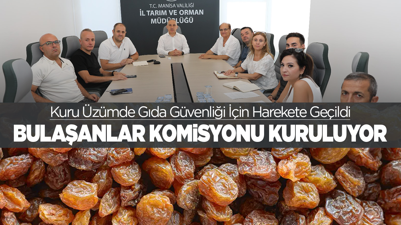 Manisa Tarım ve Orman İl Müdürlüğü, kuru üzümde mineral yağ kaynaklı kirliliğe karşı önemli bir adım attı.Toplantıya Manisa İl Tarım ve Orman Müdürü Metin Öztürk, Gıda ve Yem Şube Müdürü Dr. Defne Bacınoğlu, Bitkisel Üretim ve Bitki Sağlığı Şube Müdürü Gökmen Kaya, Ege Kuru Meyve ve Mamulleri İhracatçıları Birliği Başkan Yardımcısı Şemsettin Özgür, Ege Üniversitesi Ziraat Fakültesi Bağcılık Ana Bilim Dalı Başkanı Prof. Dr. Ahmet Altındişli ve teknik personeller katıldı.