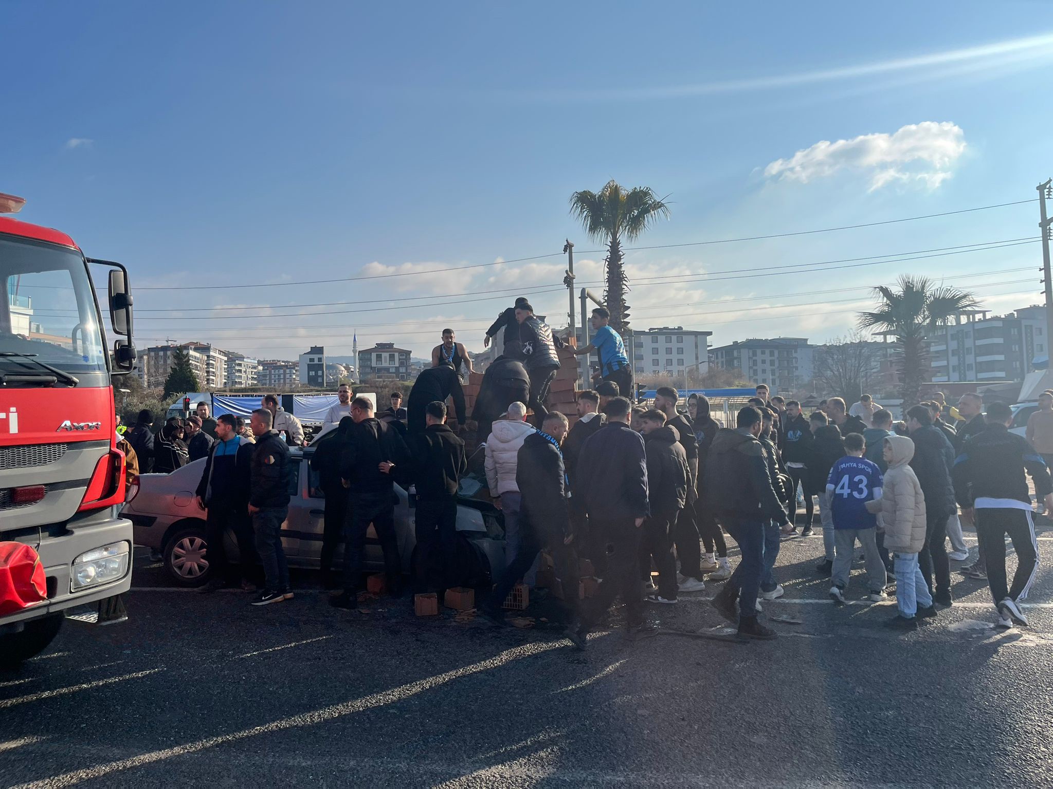Kaza anında Karşıyaka deplasmanına gitmek üzere yolda olan Kütahyaspor taraftarları, olay yerine denk gelerek büyük bir duyarlılık örneği sergiledi. Taraftarlar, kazayı görür görmez araçlarını durdurup yaralı sürücünün yardımına koştu. Ekipler gelene kadar olay yerinde güvenlik önlemleri alınmasına destek olan Kütahyaspor sevdalıları, yaralının sakinleştirilmesi ve çevredeki trafiğin kontrollü şekilde yönlendirilmesine de katkı sağladı.