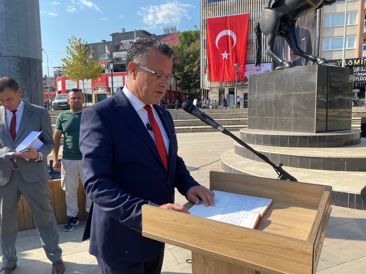 Belediye Başkanı Ahmet Öküzcüoğlu törende yaptığı konuşmada, "5 Eylül 1922, Alaşehir’imizin küllerinden yeniden doğduğu gündür. Ulu Önder Mustafa Kemal Atatürk’ün önderliğinde verilen mücadele, bağımsızlığımızın ve Cumhuriyetimizin temellerini atmıştır. Bugün, Atatürk’ün ilke ve devrimleri ışığında bu kenti daha çağdaş, daha özgür ve daha güçlü yarınlara taşımakla sorumluyuz" dedi.