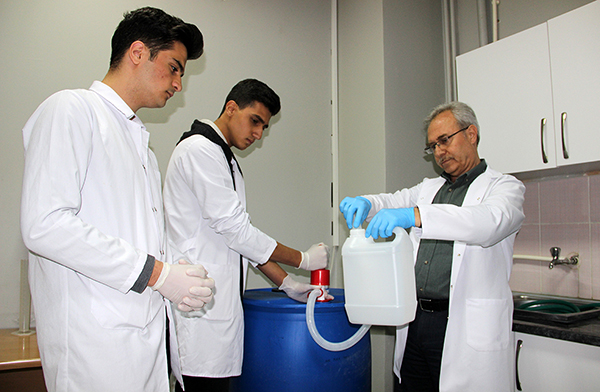 Manisa Çukurova Kimya Anadolu Teknik ve Endüstri Meslek Lisesi tarafından el dezenfektanları da üretildi.