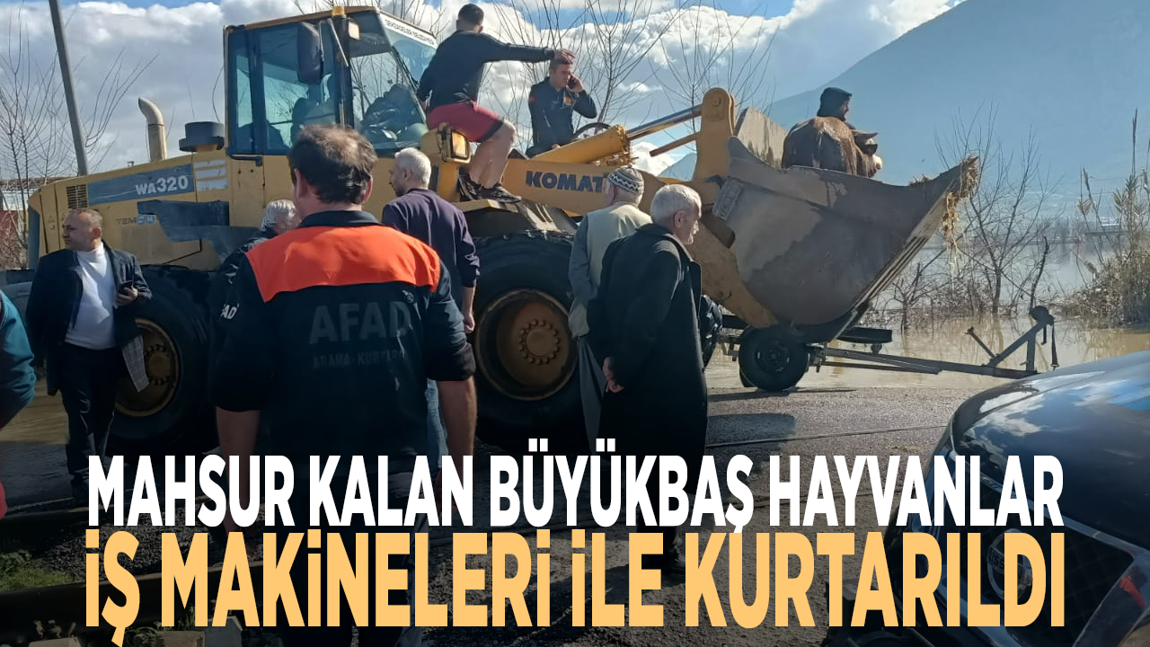 Manisa'ya yakın mesafedeki Yeniharmandalı Mahallesi'nde yağışlar sonrası günlerdir mahsur kalan büyükbaş hayvanlar belediye ekipleri ve AFAD'ın desteğiyle kurtarıldı.