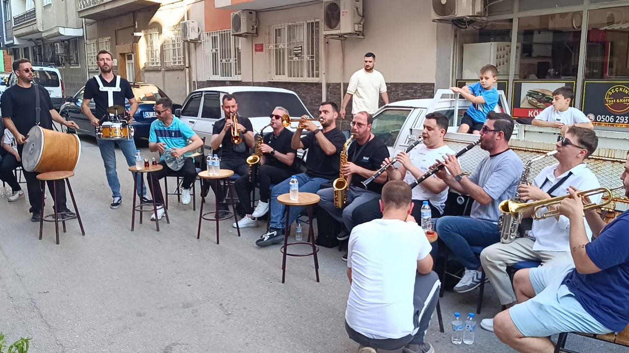 Mahallede bir araya gelen müzisyenler, Balkan şarkılarını seslendirerek mahalle sakinlerine de bayram coşkusu yaşatıyor.