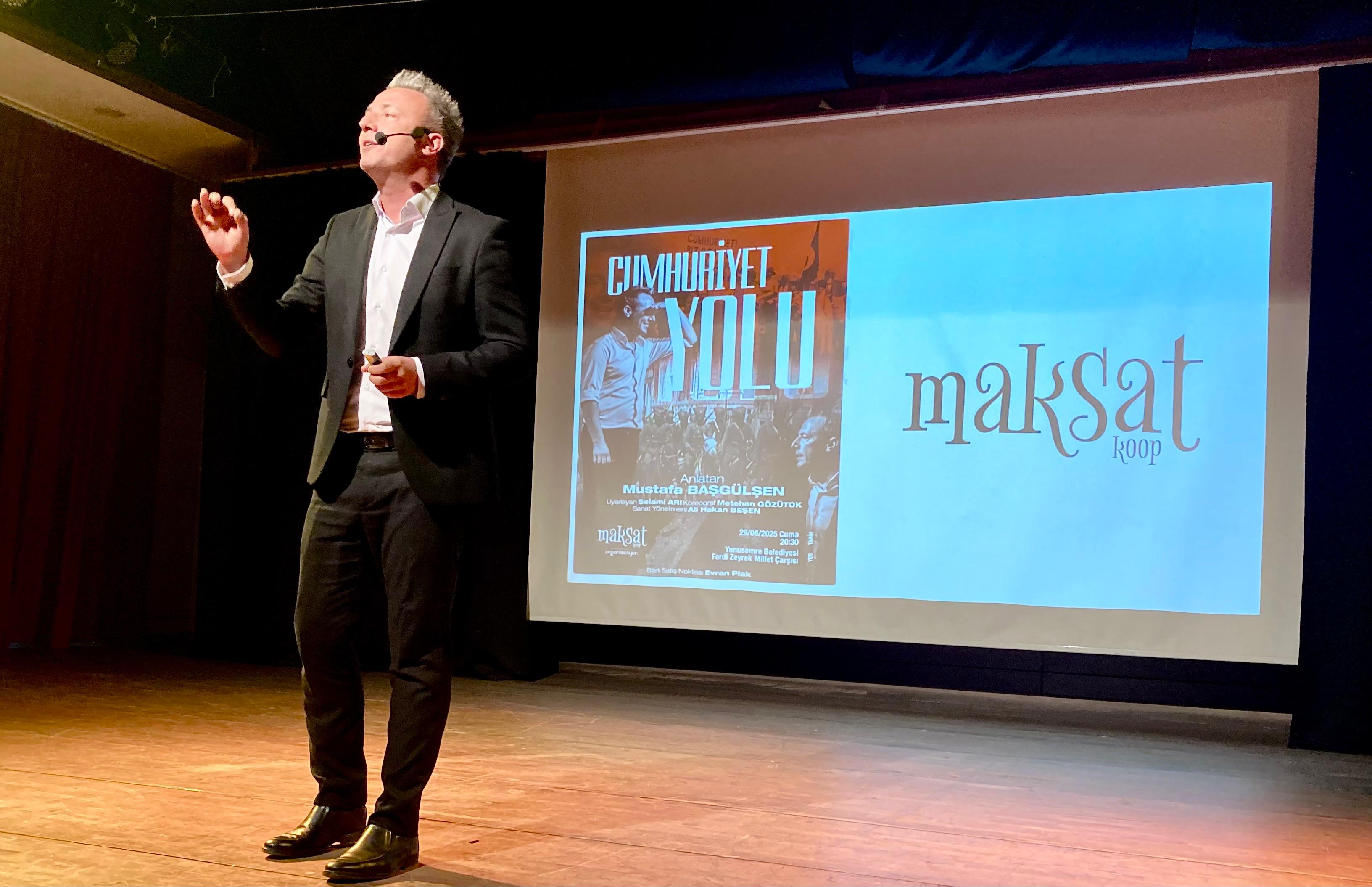 Başgülşen, Çanakkale Savaşı’ndan Kurtuluş Mücadelesi’ne ve Cumhuriyet devrimlerine uzanan Atatürk’ün destansı yaşamını sahneye taşıdı. Çanakkale Cephesi’nde askerlerine söylediği “Ben size savaşmayı değil, ölmeyi emrediyorum” sözünün de anlatıldığı sunum sırasında sanatçı zaman zaman gözyaşlarını tutamadı.