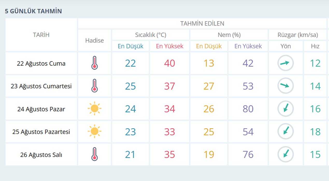 MANİSA İÇİN 5 GÜNLÜK HAVA TAHMİNİ