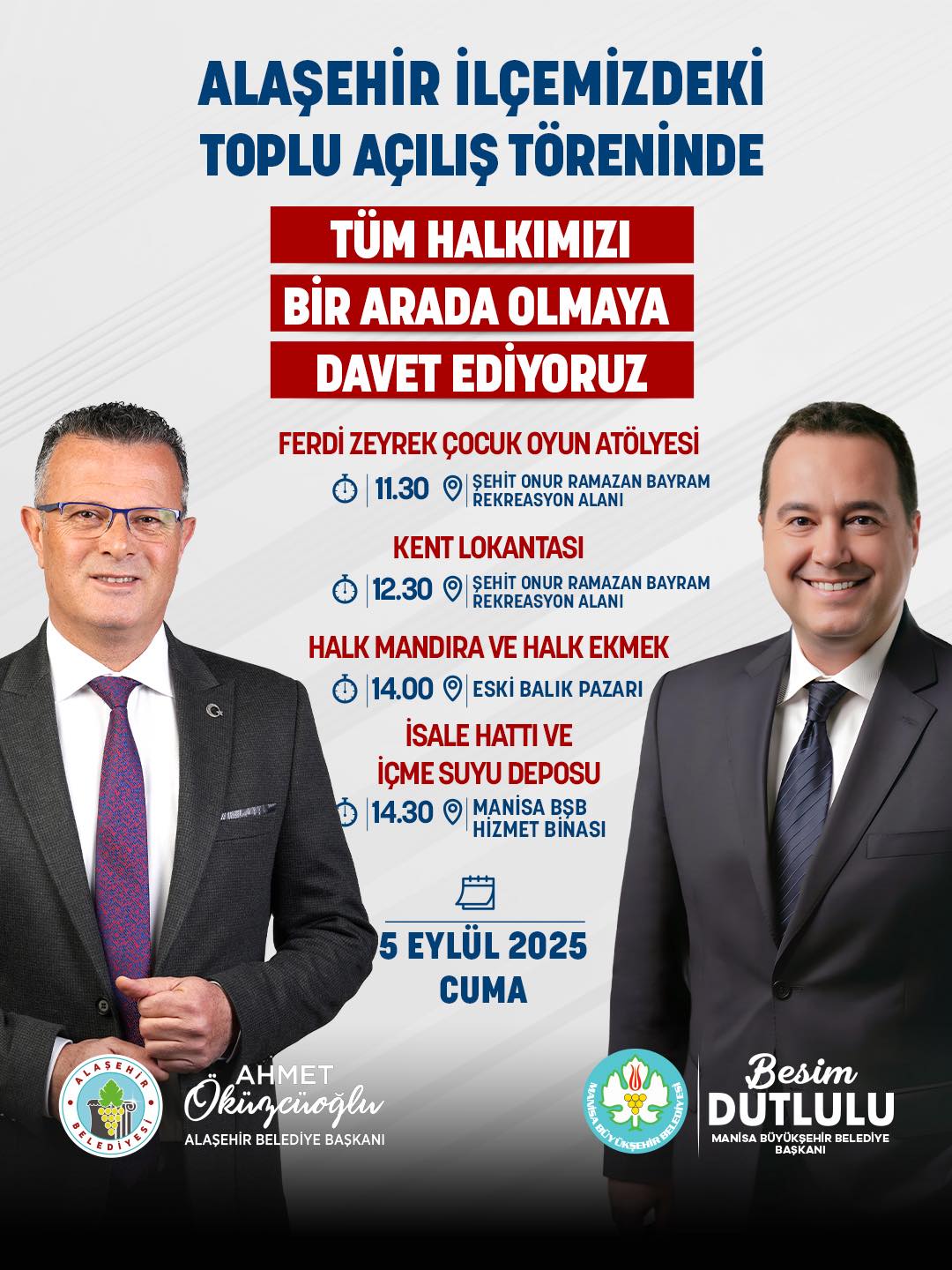 Başkan Dutlulu, Alaşehir Belediye Başkanı Ahmet Öküzcüoğlu ve vatandaşlarla birlikte yapılacak toplu açılış törenine tüm halkı davet ederek şu programı paylaştı: