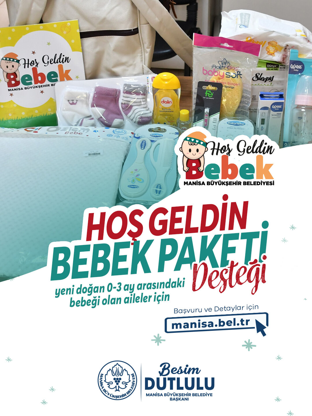 Manisa Büyükşehir Belediyesi, yeni doğan bebeği olan ailelere yönelik “Hoş Geldin Bebek Paketi” desteğini sürdürdüğünü duyurdu. 0-3 ay aralığında bebeği bulunan aileler projeden yararlanabiliyor.