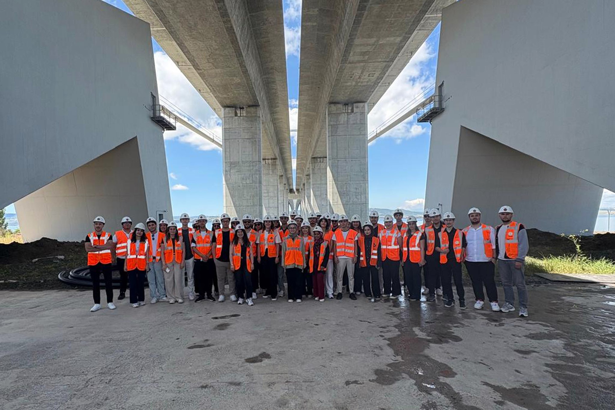 1915 Çanakkale Köprüsü’nün proje süreci, yapım aşamaları, şantiye yönetimi ve uygulanan ileri mühendislik çözümleri hakkında yerinde bilgi alan öğrenciler, devasa yapının mühendislik detaylarını gözlemleme fırsatı buldu. Uluslararası düzeyde büyük bir mühendislik başarısı olarak kabul edilen köprüde yapılan teknik sunumlarda, alanında uzman yetkililer tarafından projede karşılaşılan zorluklar ve geliştirilen çözüm yolları detaylı şekilde aktarıldı.